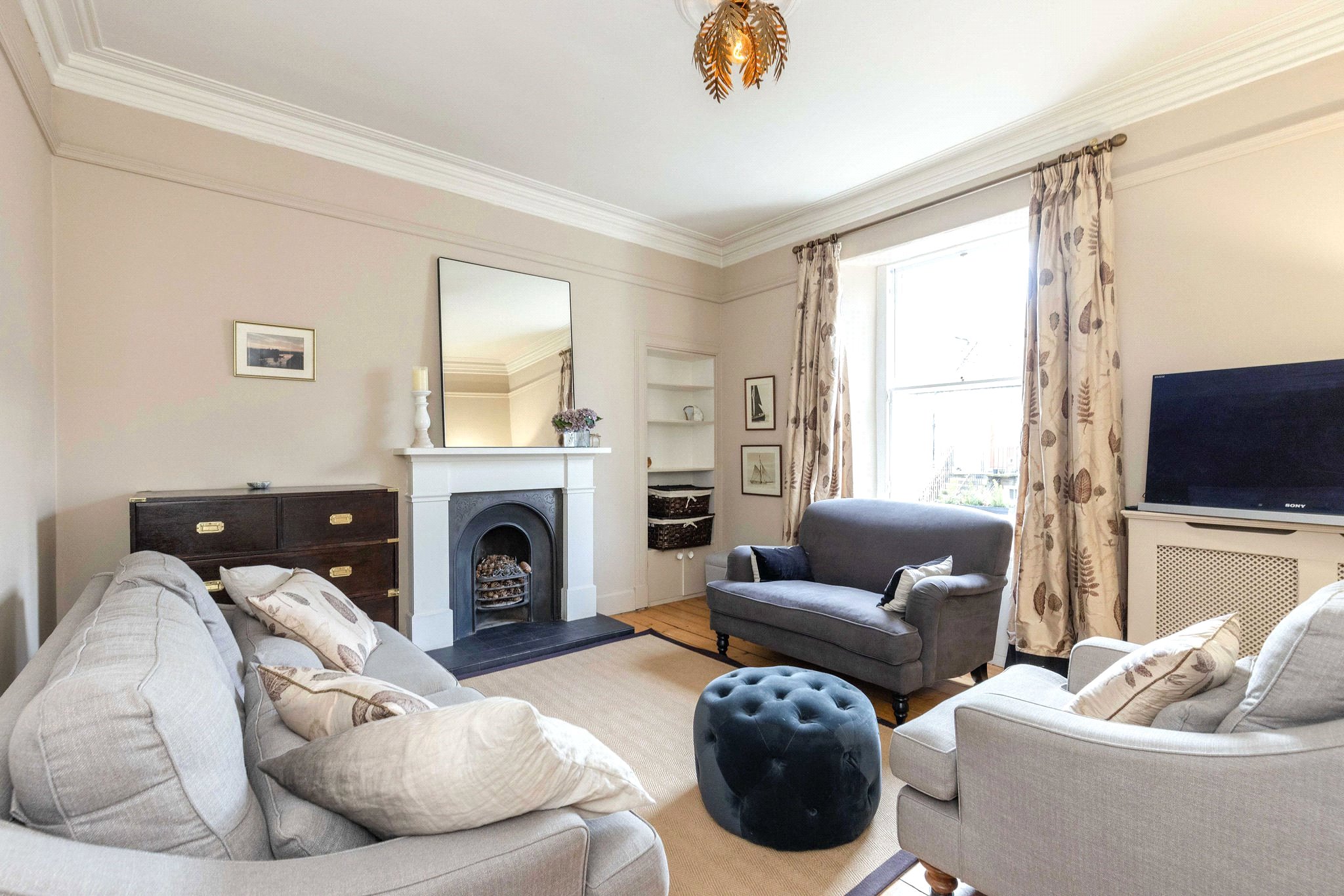Renowned for their period charm, community spirit and proximity to cosmopolitan Stockbridge, The Colonies is a highly desirable residential address in central Edinburgh. Arranged over two levels, the property has a spacious feel internally, situated on a quiet cobbled street close to The Water of Leith and situated just a stone’s throw from leafy Inverleith Park and the Royal Botanic Garden. Today, the Colonies are much sought-after by people wishing to enjoy the wonderful village-like feel that exists along with the array of fantastic amenities and green spaces on the doorstep. The peaceful conservation area lies enviably close to fashionable bars, popular restaurants, bustling cafés, and vibrant independent boutiques. Although just a twenty-minute walk, there are regular bus services into the city centre, and it is an excellent location for Edinburgh International Airport and The Queensferry Crossing.