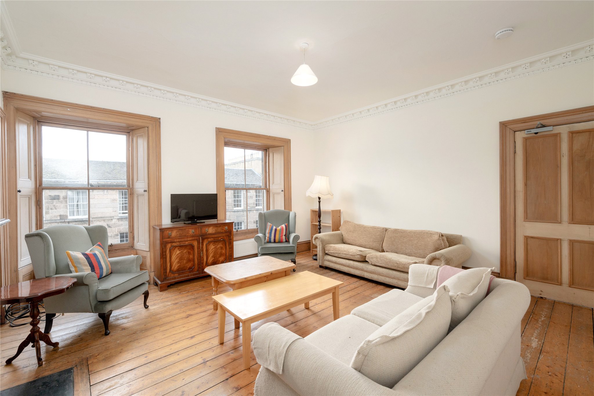 Set on one of Edinburgh’s most sought-after New Town addresses, this exceptional four-bedroom, second-floor flat at 19/7 Cumberland Street offers a rare opportunity to acquire a home of real elegance, natural light, and outstanding lateral space. Spanning approximately 1,352 square feet, the property is presented in excellent condition throughout and has been thoughtfully maintained to combine the charm of a traditional Georgian building with the comfort of modern living.