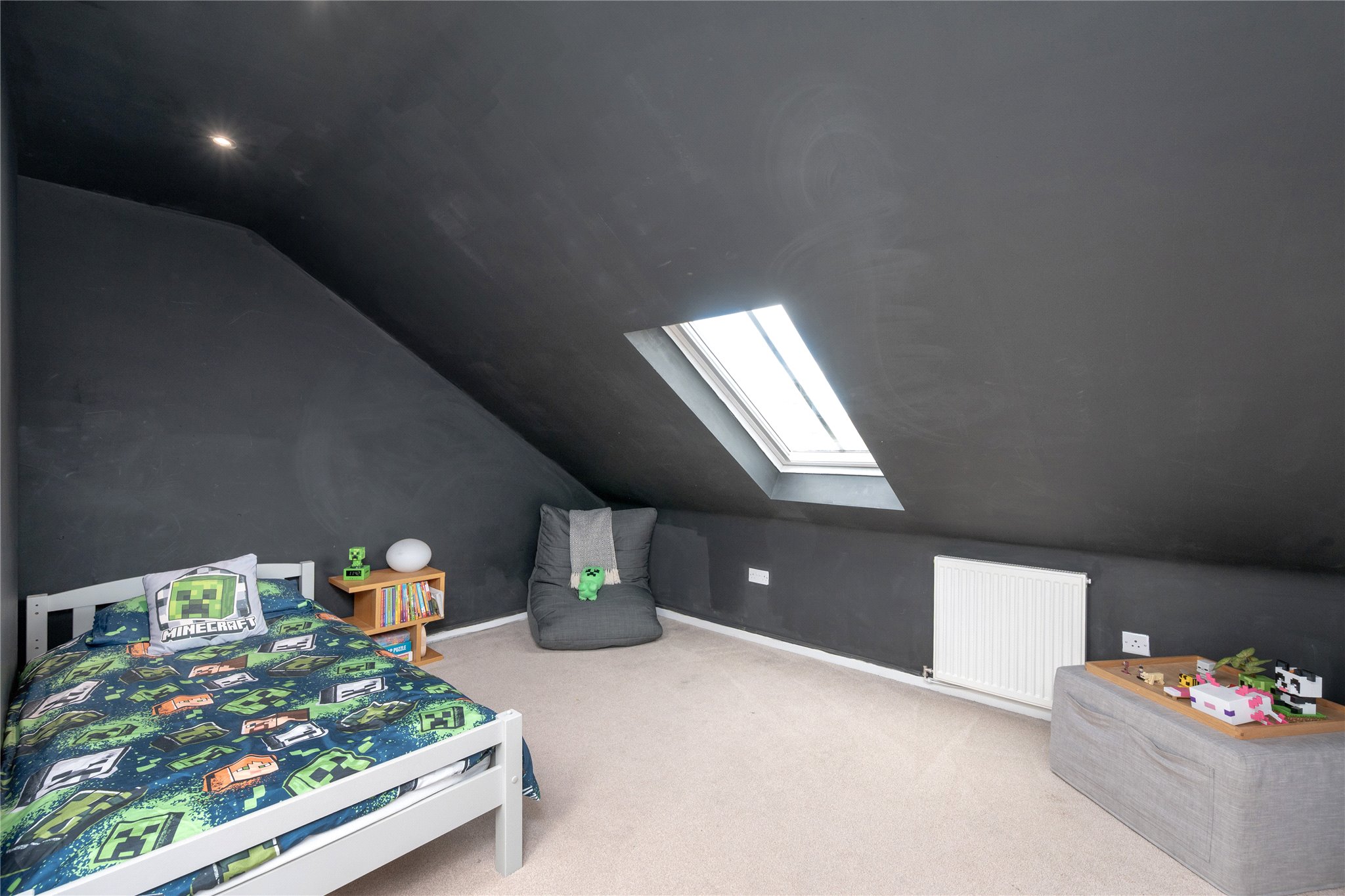 There are four well-proportioned double bedrooms arranged across the two levels, offering exceptional flexibility whether used as bedrooms, guest rooms, or a home office. The principal bedroom enjoys a peaceful rear aspect, while the upper level includes two further double rooms, a family bathroom, and excellent storage. A stylish shower room completes the lower level.
