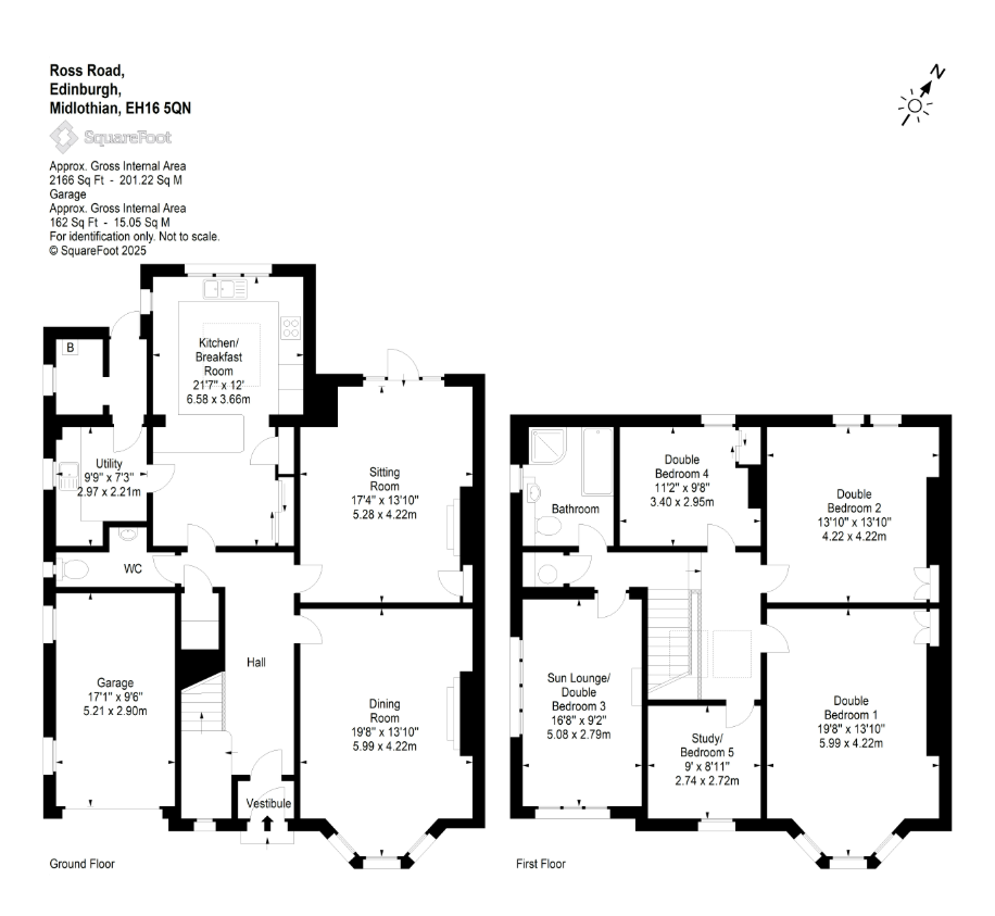 First Floor: Principal Bedroom, Double Bedroom two, Sunlounge / Double Bedroom three, Double bedroom four, Bedroom 5 / Study, Family Bathroom.