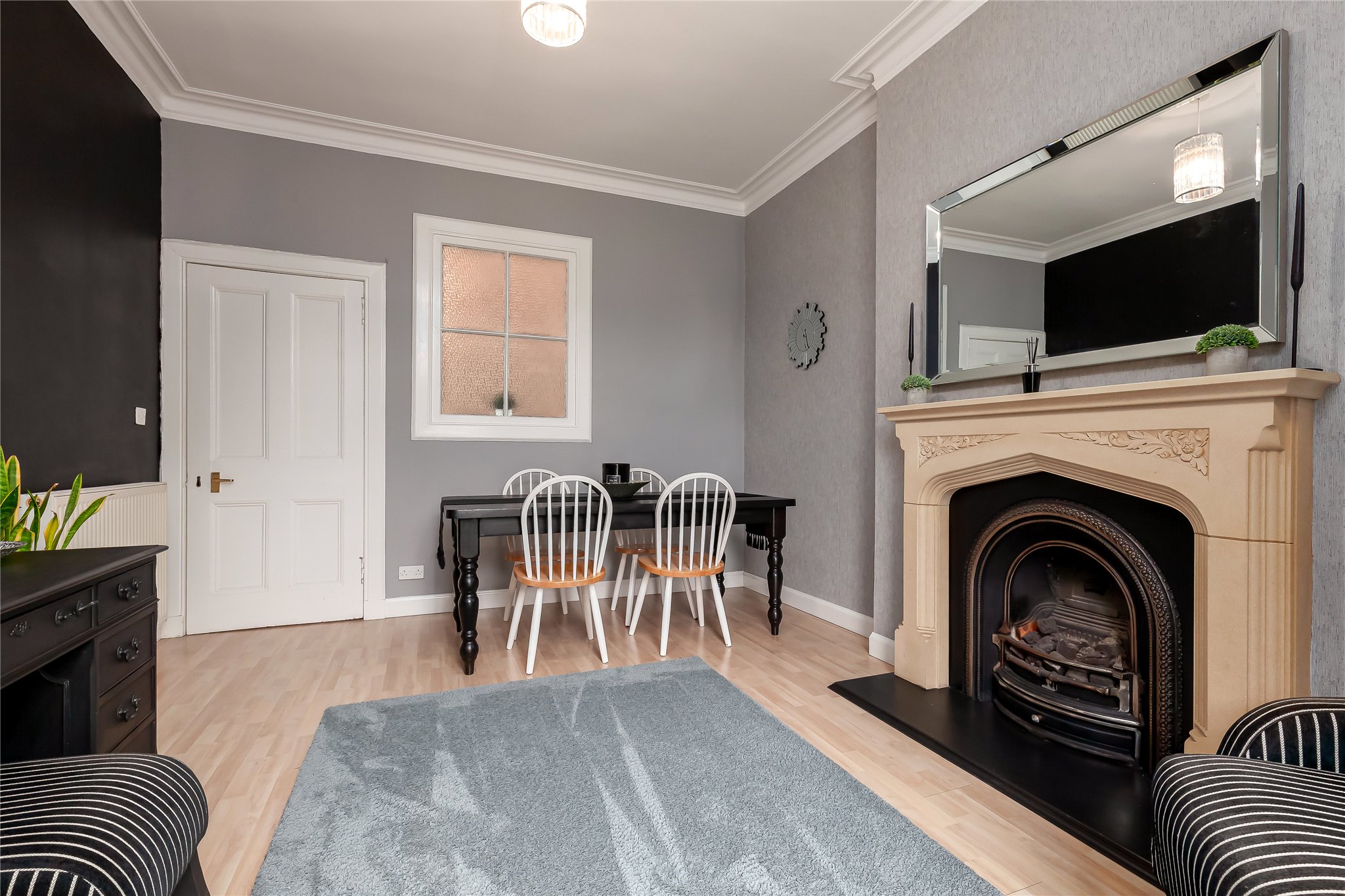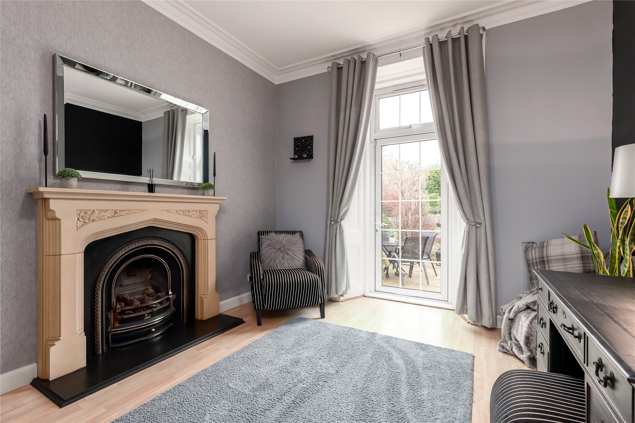 12 Western Terrace is a beautifully presented, spacious, five-bedroom, semi-detached Victorian house, located in the much sought after area of Murrayfield, one of Edinburgh’s most exclusive and peaceful conservation areas. The property effortlessly melds many fine period features such as ornate cornicework, intricate fireplaces, high ceilings and bay windows, with its modern fixtures and fittings. Owned by the current owners for 30 years, this much-loved family home features well-proportioned accommodation over three levels, far reaching views of the Pentland Hills, off-street parking and an established, enclosed, south facing rear garden largely laid to lawn with patio area, ideal for al fresco dining and entertaining.