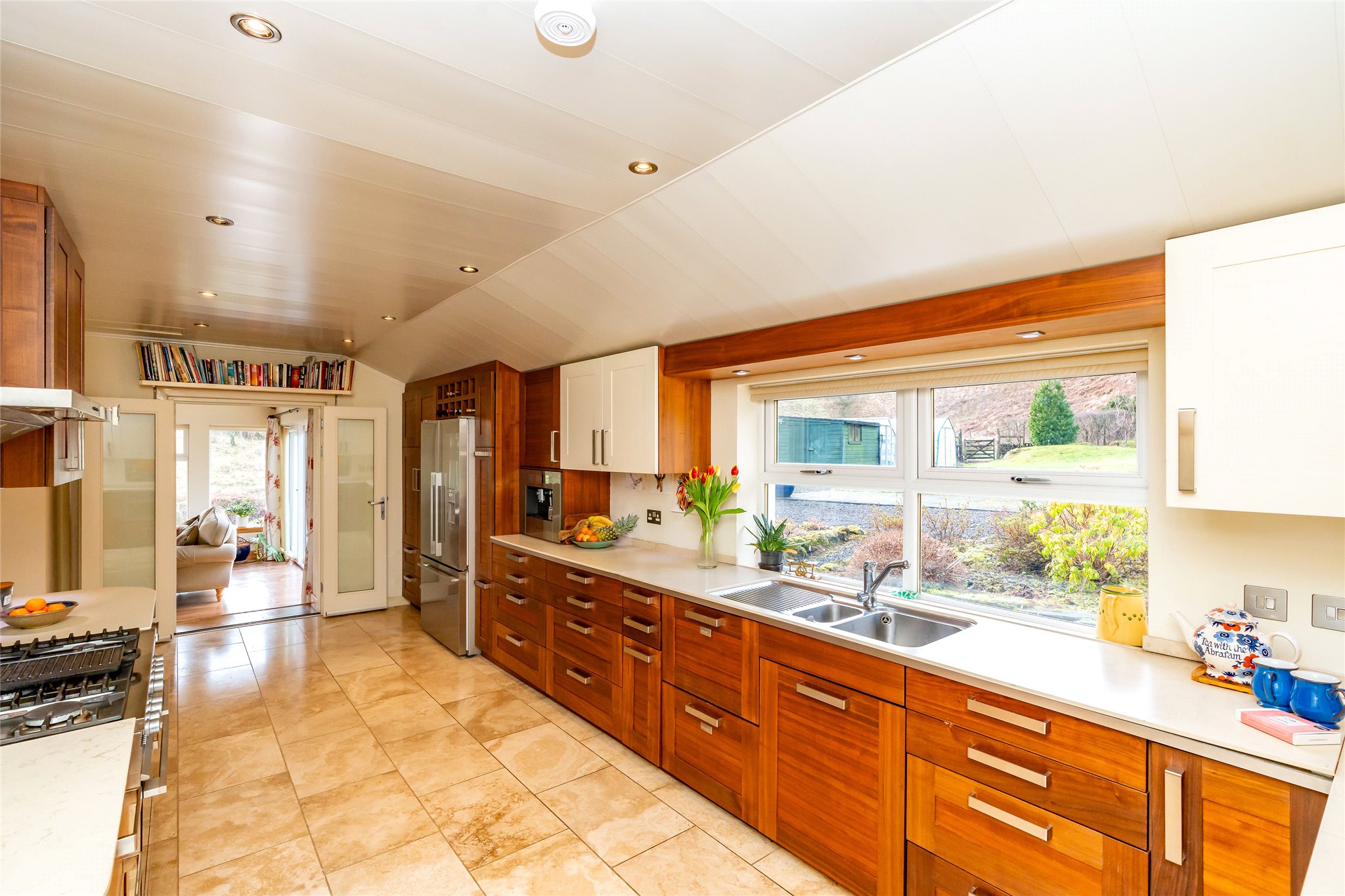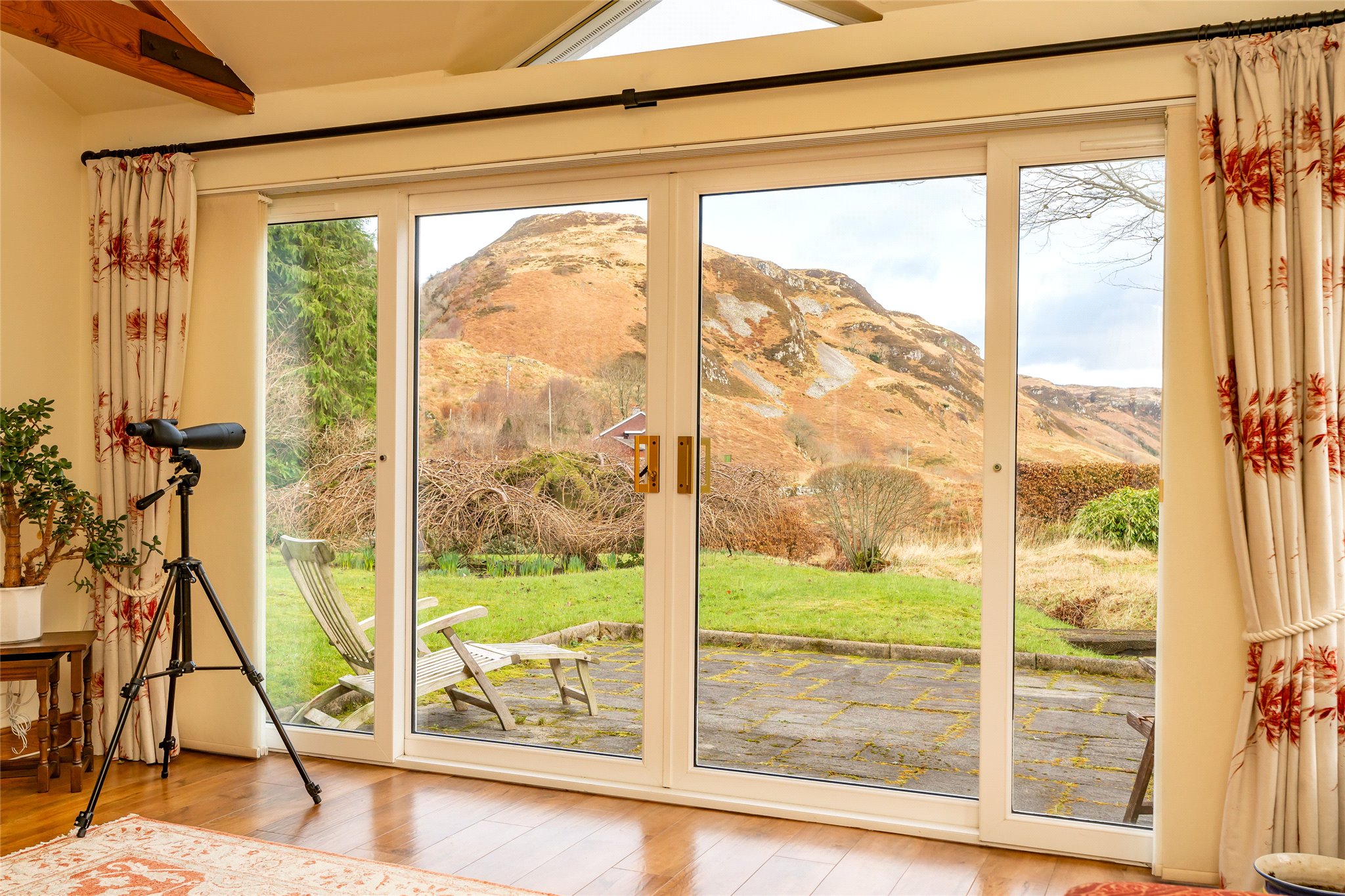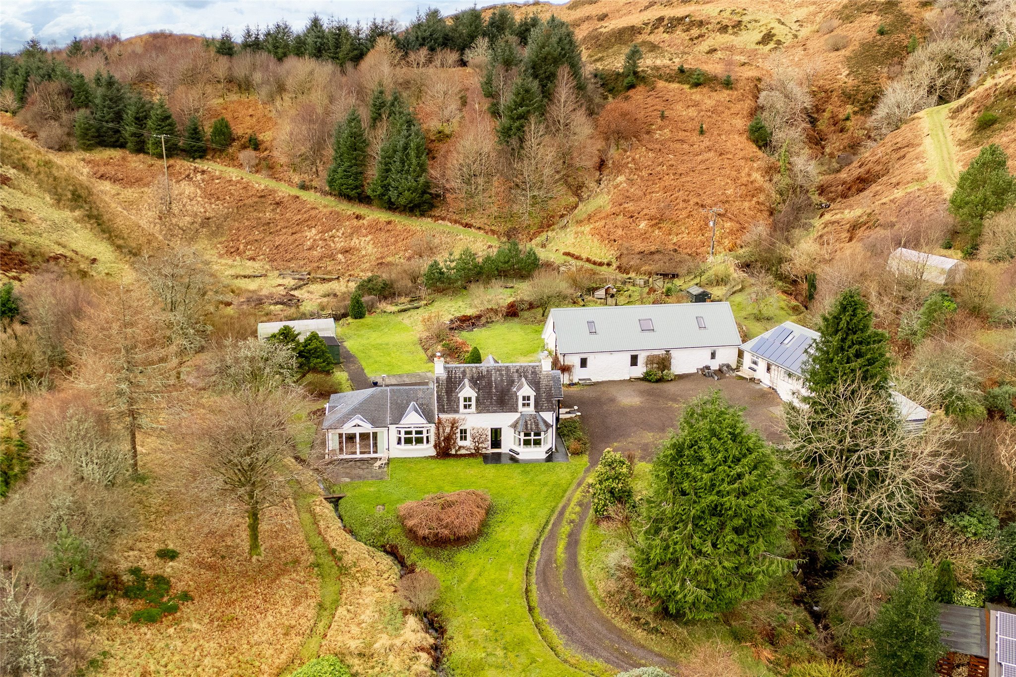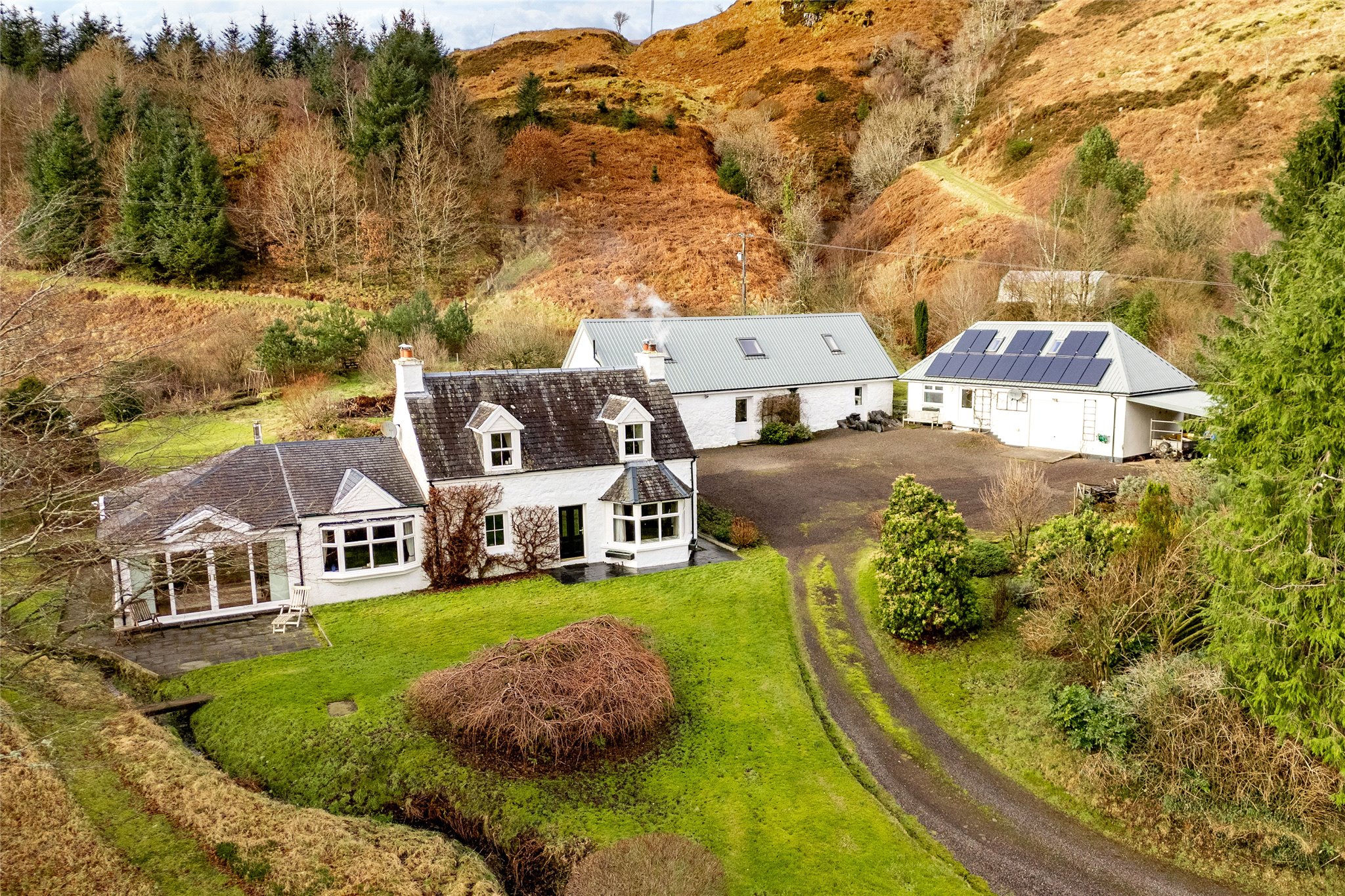From the impressive light-filled living and dining rooms, offering sweeping vistas of the rugged hills and Loch Scammadale, to the spacious bespoke kitchen and the cosy sitting room/library, this is an exceptional three-bedroom residence. Boasting expansive mature gardens and two self-contained converted outbuildings, ideal for visiting friends/family or as a holiday let, this is an outstanding and rarely available opportunity.