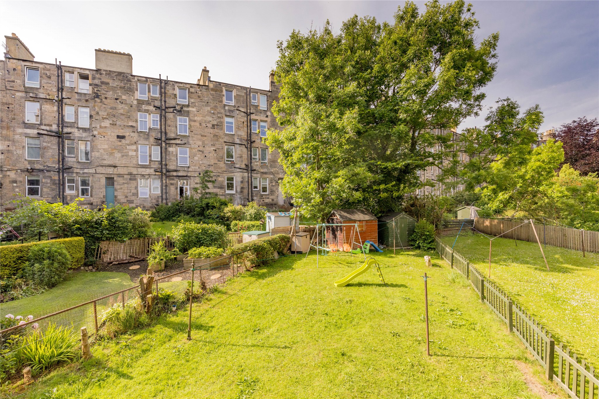 The flat benefits from a first-floor position, providing both convenience and security, and forms part of a traditional tenement building with a well-maintained communal garden—perfect for relaxing outdoors. Additionally, a communal bike shed is available for residents, offering valuable and secure cycle storage.