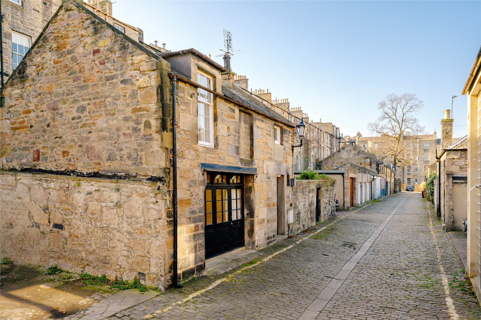 A unique opportunity to acquire a beautiful mews house in the heart of Edinburgh’s New Town, a UNESCO World Heritage Site. Consisting of entrance hall, a kitchen through to dining space and a large, bright sitting room on the ground floor, the property offers the opportunity to create a beautiful two bedroom home. Upstairs, there is a large principal bedroom, a second double bedroom and a jack and jill bathroom. Requiring some upgrading, this property could be the perfect pied-a-terre or investment property.