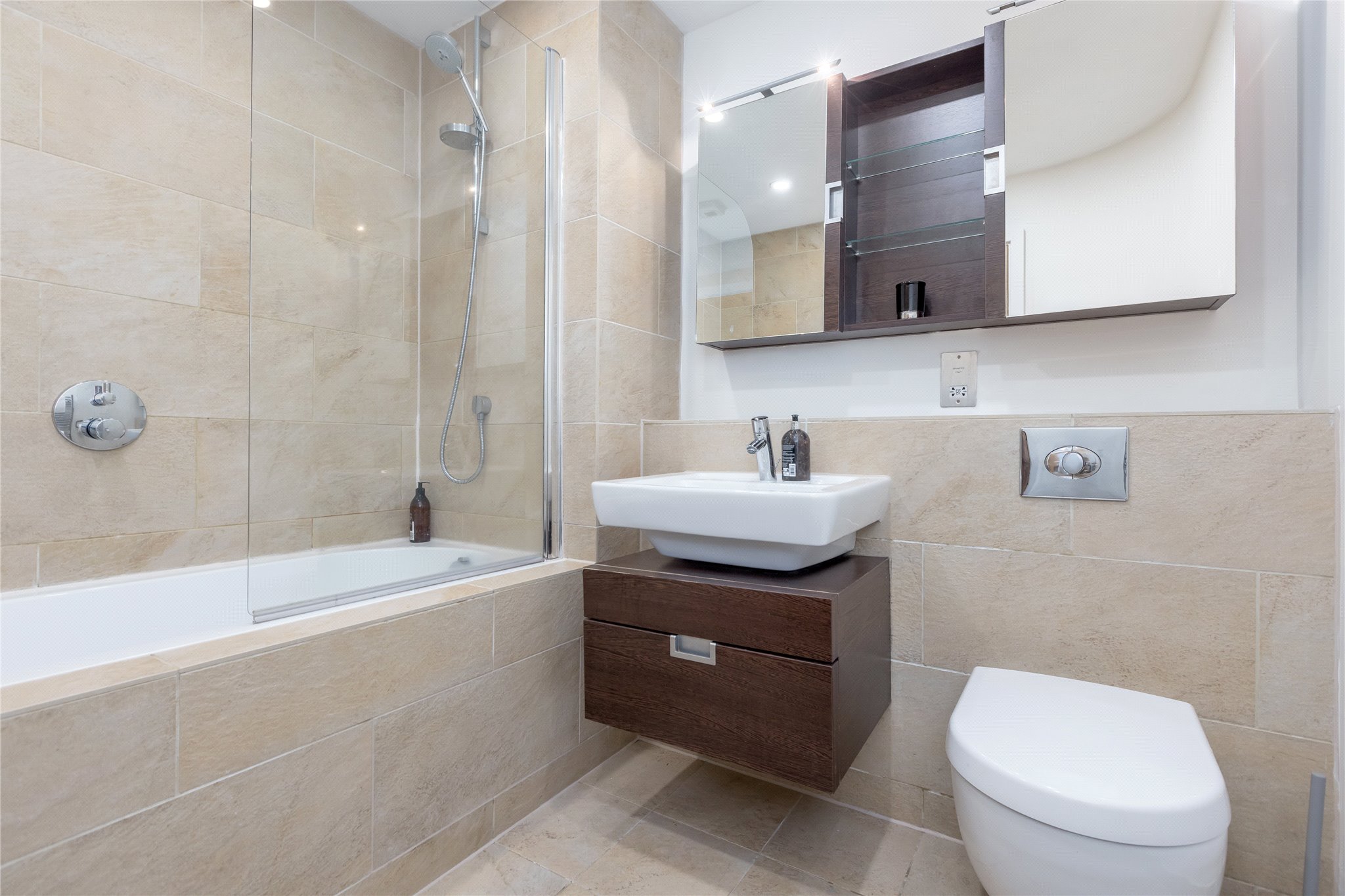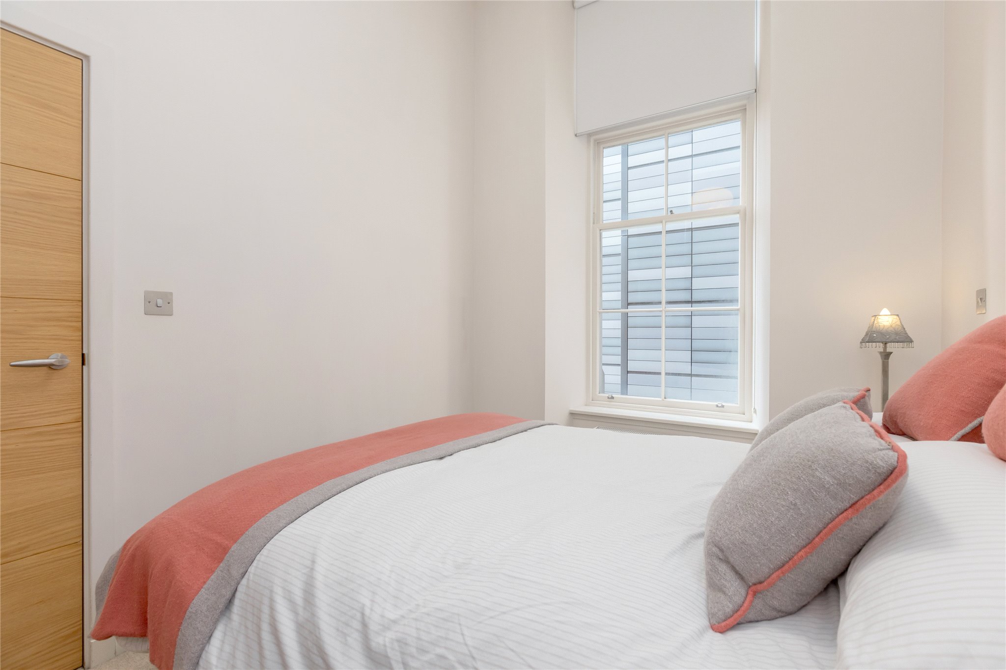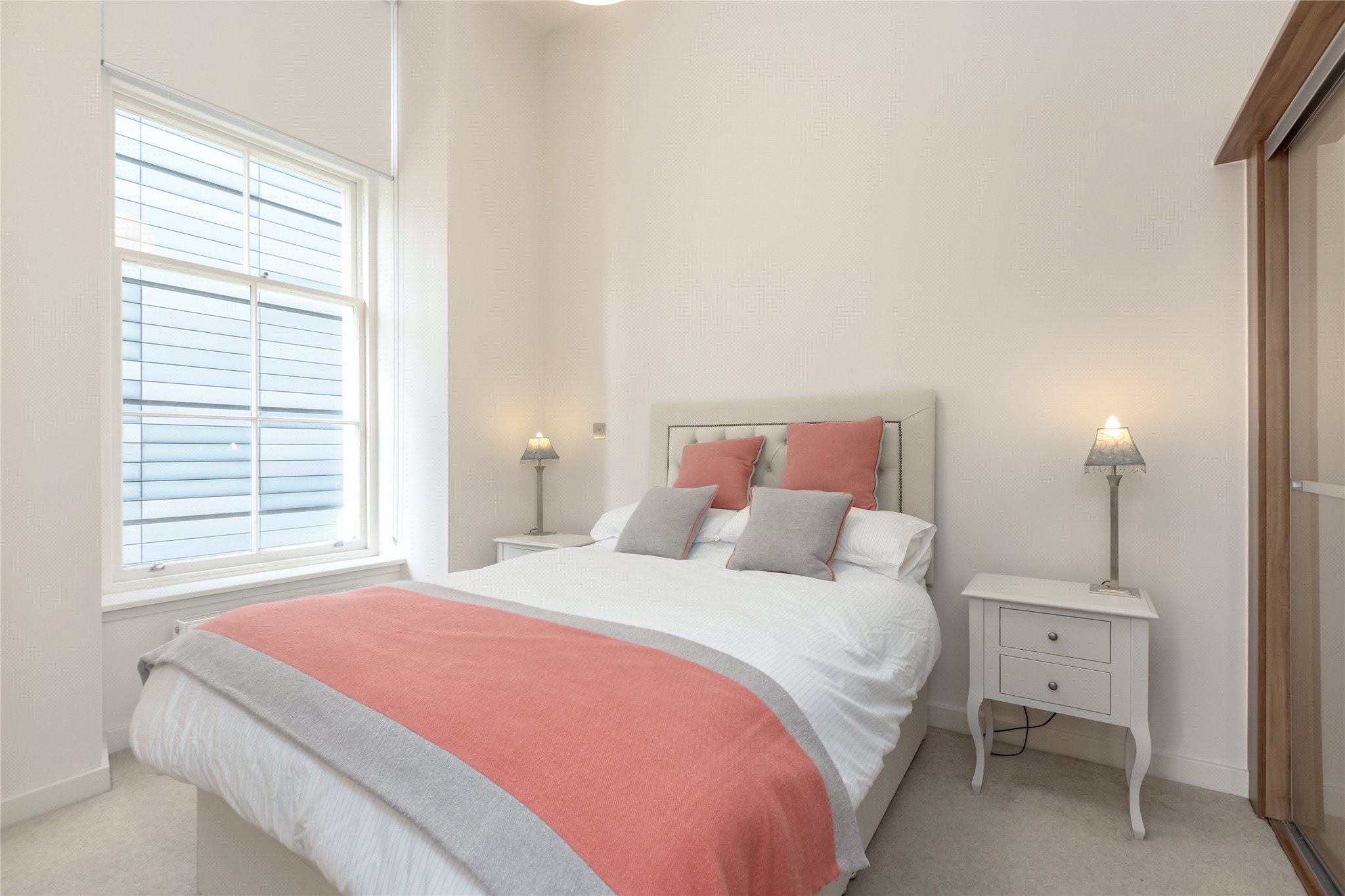 The double bedroom is quietly situated to the rear and offers a peaceful retreat with built-in wardrobes and comfortable dimensions. A modern bathroom, with quality fittings including a full-size bath and overhead shower, completes the accommodation.