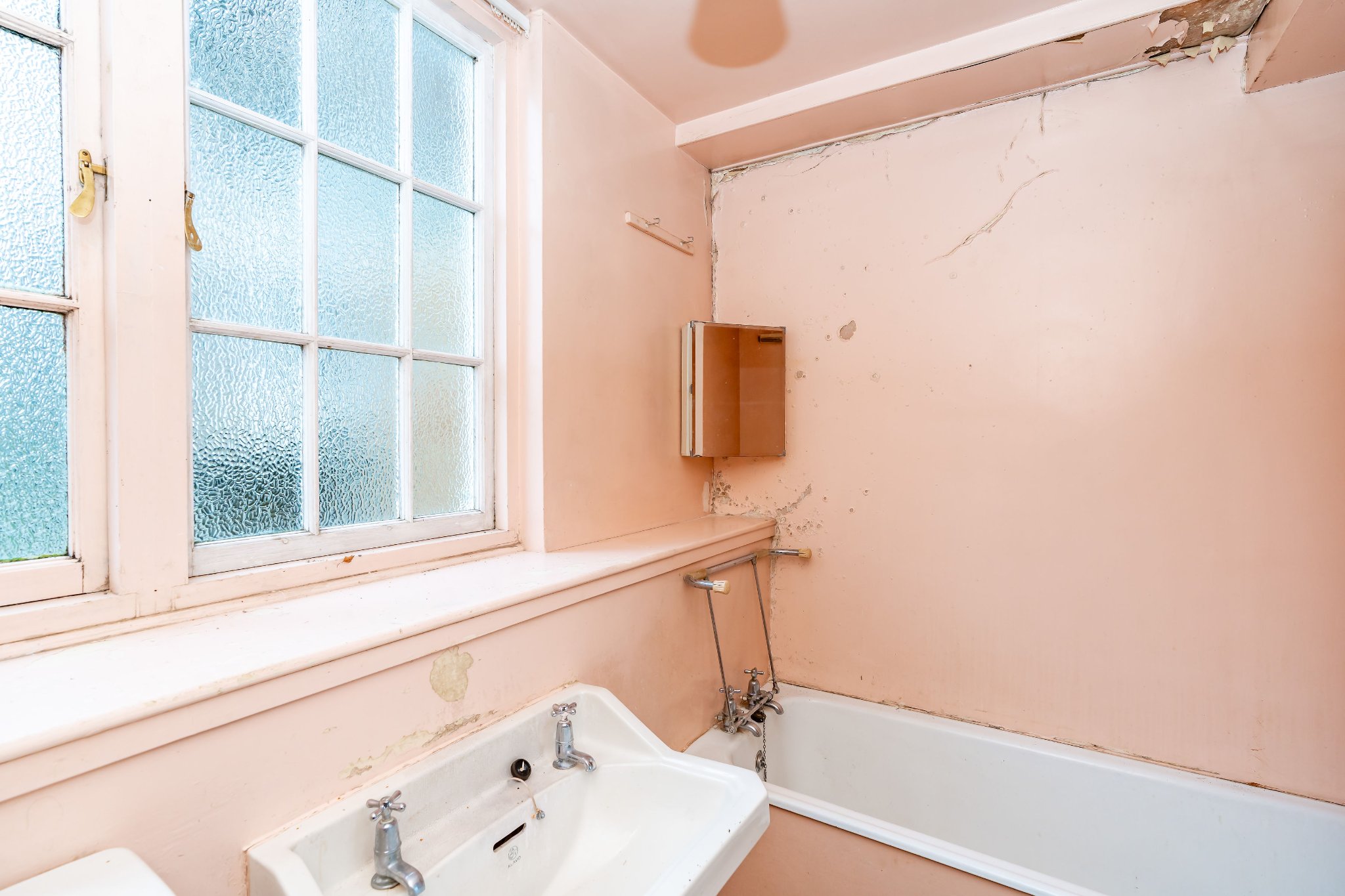 The ground floor also features a living room with dual aspect windows and an adjoining hallway with storage. The kitchen is large and functional, providing an excellent canvas for modernisation.