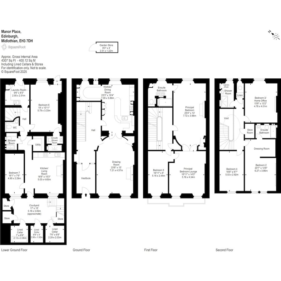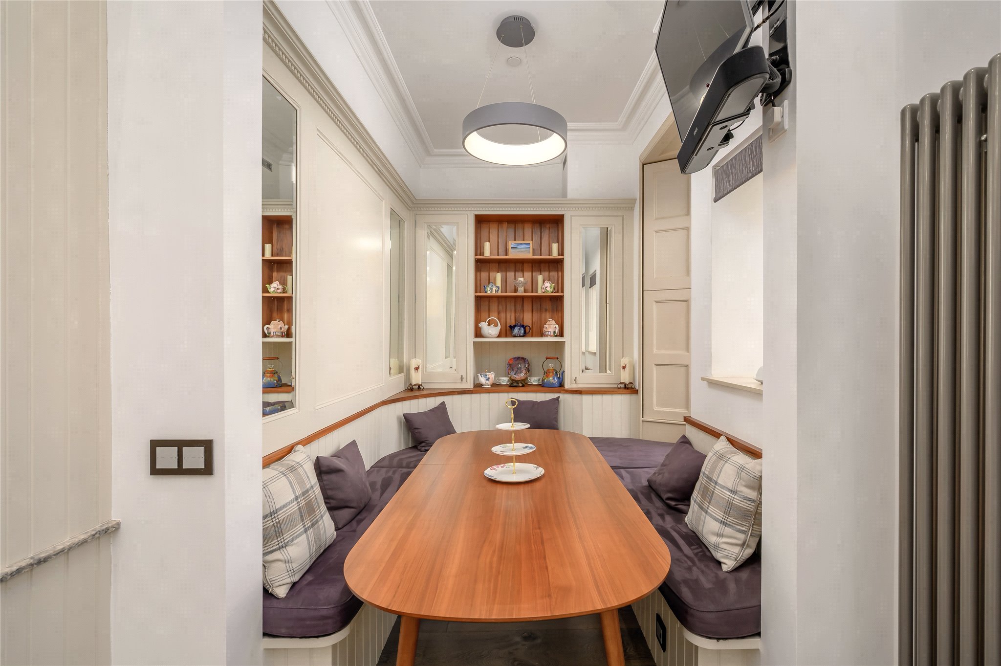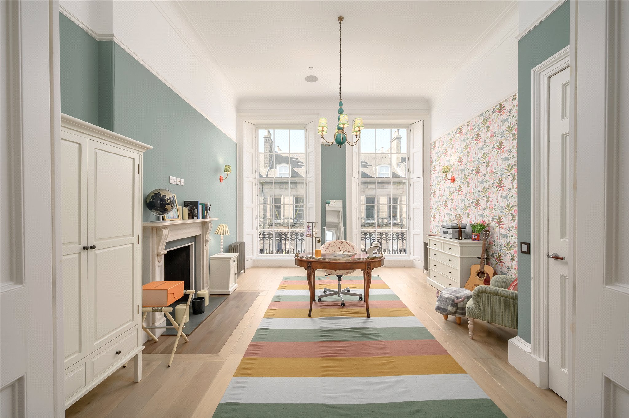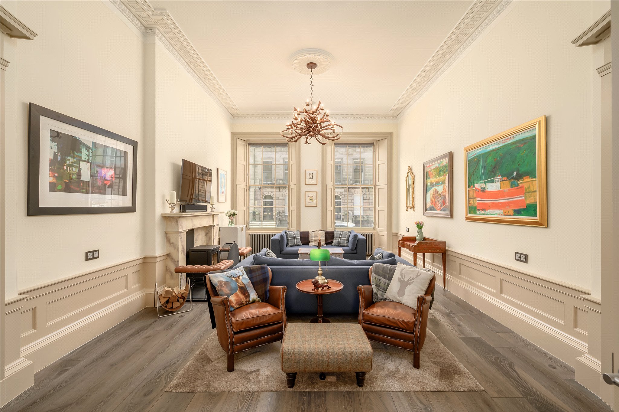 Every detail of this impressive property has been curated to the highest specification, offering a turnkey lifestyle. Imposing bow-ended rooms, original flagstone floors, ornate cornicing, working shutters, and period fireplaces preserve the grace of the Georgian era, while modern additions add ease - including new double-glazed windows, Sonos audio in key rooms, a smart system for lighting and heating, a sophisticated video entry system, six-camera external security system with intruder alarm, and a sprinkler system - deliver contemporary convenience and peace of mind. From the bespoke Sculleries of Stockbridge kitchen to the fully landscaped east-facing garden with pergola, this seven-bedroom family home delivers quality and elegance. A particular highlight is the versatile sub-divisible one-bedroom flat on the lower ground floor with open-plan kitchen/living/dining room.