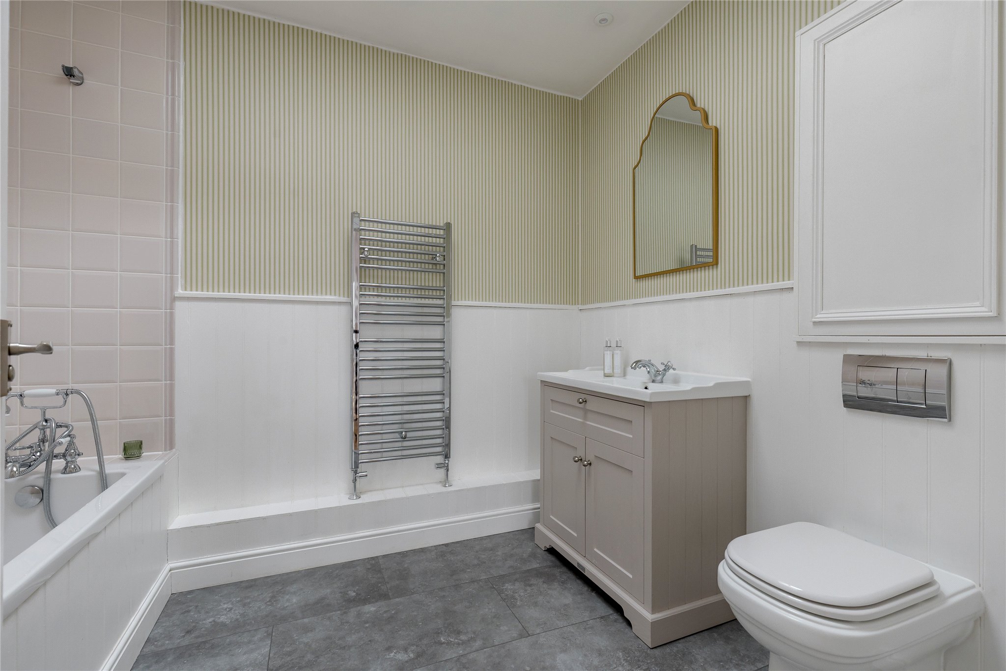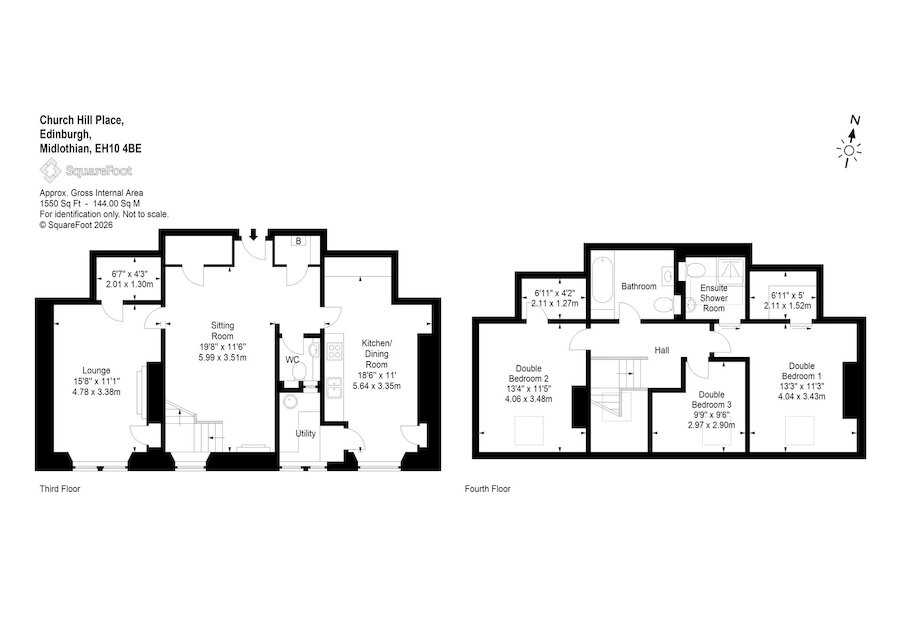 Providing bright and airy accommodation, across two levels, this spacious apartment offers fabulous living/ entertaining space on the third floor. Consisting of a well sized dining/ kitchen with handy utility room, a large sitting room, a beautiful lounge with period features, as well as a WC on this level and a large storage cupboard. The fourth floor is accessed by a modern staircase, providing a loft-style feel, and consists of a principal bedroom with en suite shower room and dressing room, two further bedrooms, a family bathroom and handy storage.
