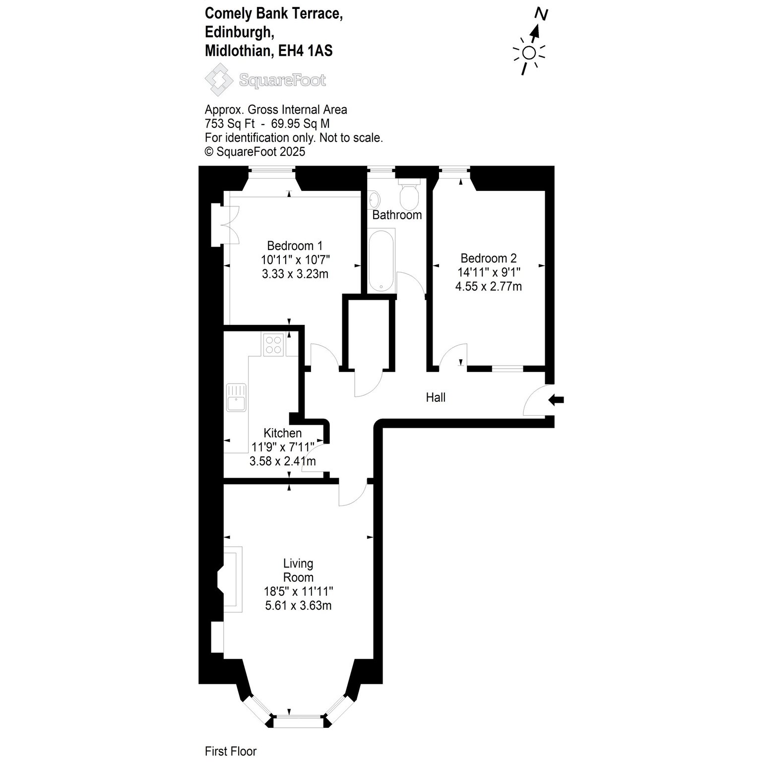 Additional features of this attractive property include gas central heating, large sash windows, and a total internal area of approximately 753 sq ft (69.95 sq m). Situated on the first floor of a traditional tenement building, the flat combines classic proportions with a peaceful yet central location.