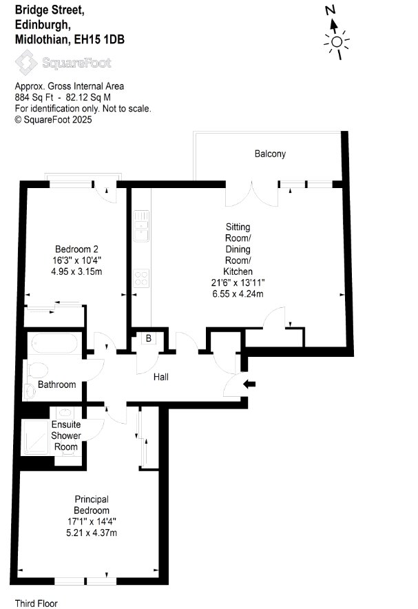 The accommodation is presented in good condition throughout and includes a generous principal bedroom with a sleek ensuite shower room, a second spacious double bedroom, and a well-appointed main bathroom. Both bedrooms benefit from fitted wardrobes, providing excellent storage. A welcoming hall with built-in storage adds to the practicality of the home.