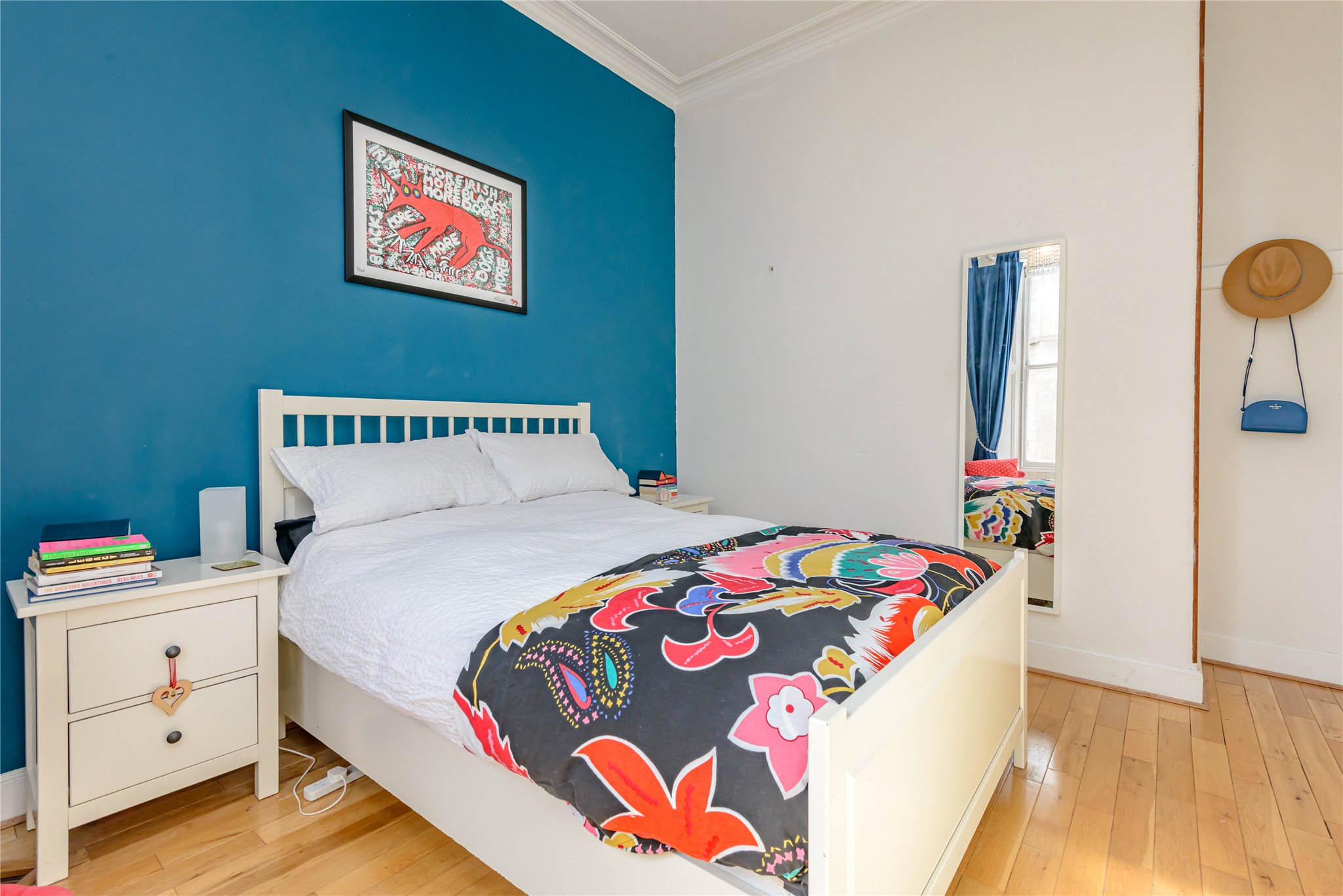The property is in excellent condition throughout, blending tasteful modern upgrades with charming period details such as ornate cornicing, high ceilings, and original wood flooring. The generous kitchen enjoys a sunny outlook and is bathed in light, creating a perfect space for relaxing or entertaining, and is equipped with ample storage and workspace. Both bedrooms are spacious and tranquil, with plenty of natural light and room for freestanding furniture. A contemporary bathroom completes the accommodation, featuring stylish fixtures and a clean, modern finish.