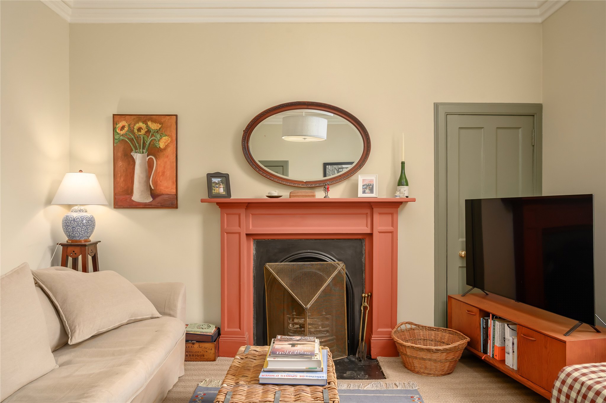 Occupying the upper levels of a traditional colony building, the property is accessed via a private external staircase leading into a bright vestibule and welcoming hallway. The first floor hosts a beautifully appointed sitting room with a large window flooding the space with natural light, making it a perfect place to relax or entertain.