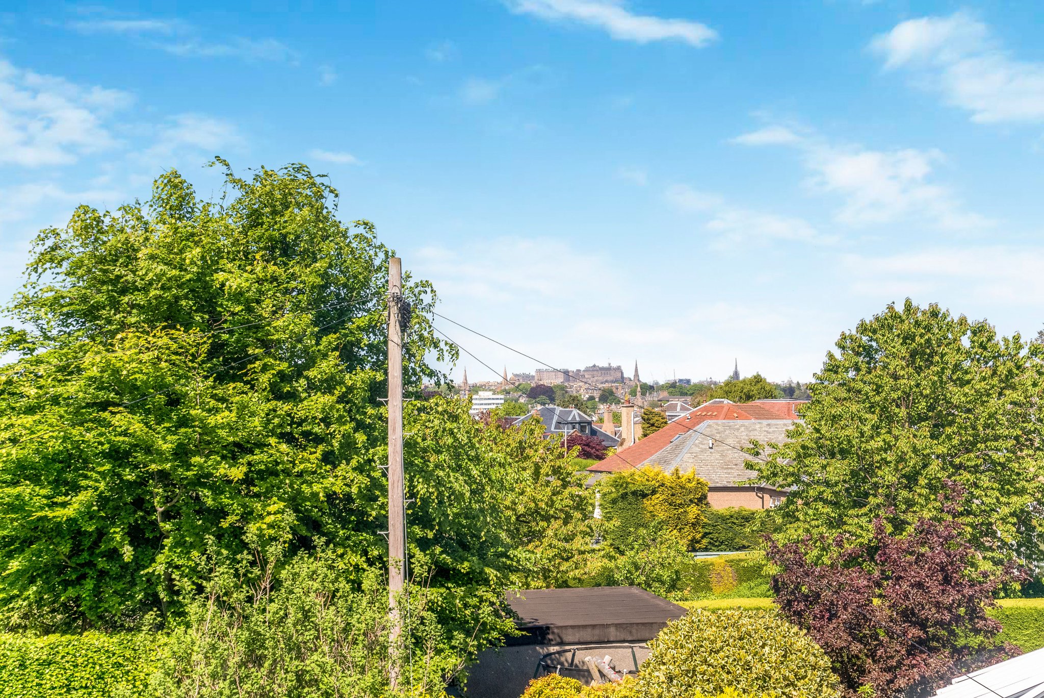 Upstairs, the thoughtfully remodelled layout includes two double bedrooms, one with views to the Pentland Hills and the other with views across the city to Edinburgh Castle and Fife. A modern en suite shower room and a storage cupboard accessed via the shower room completes the first floor.