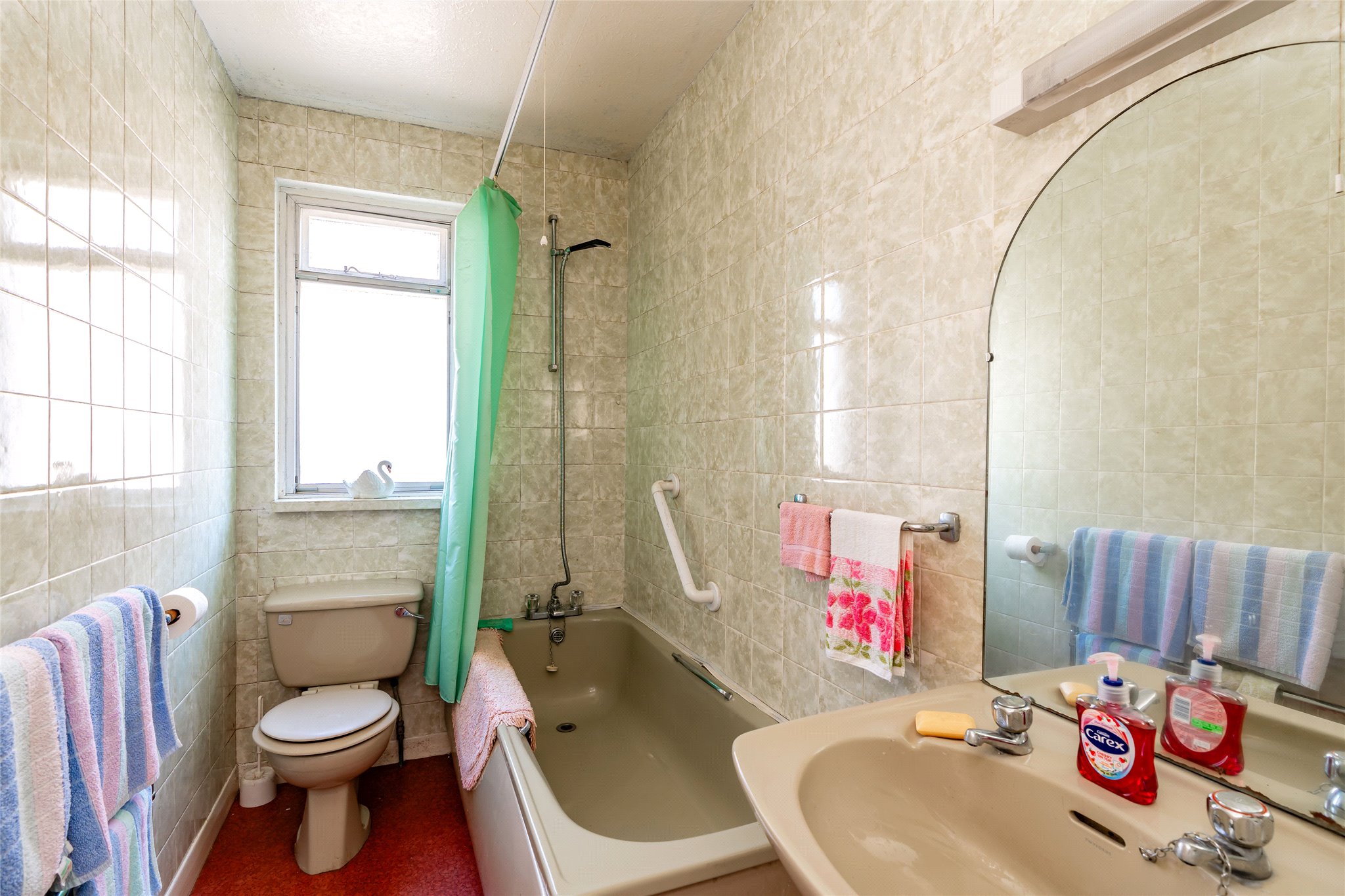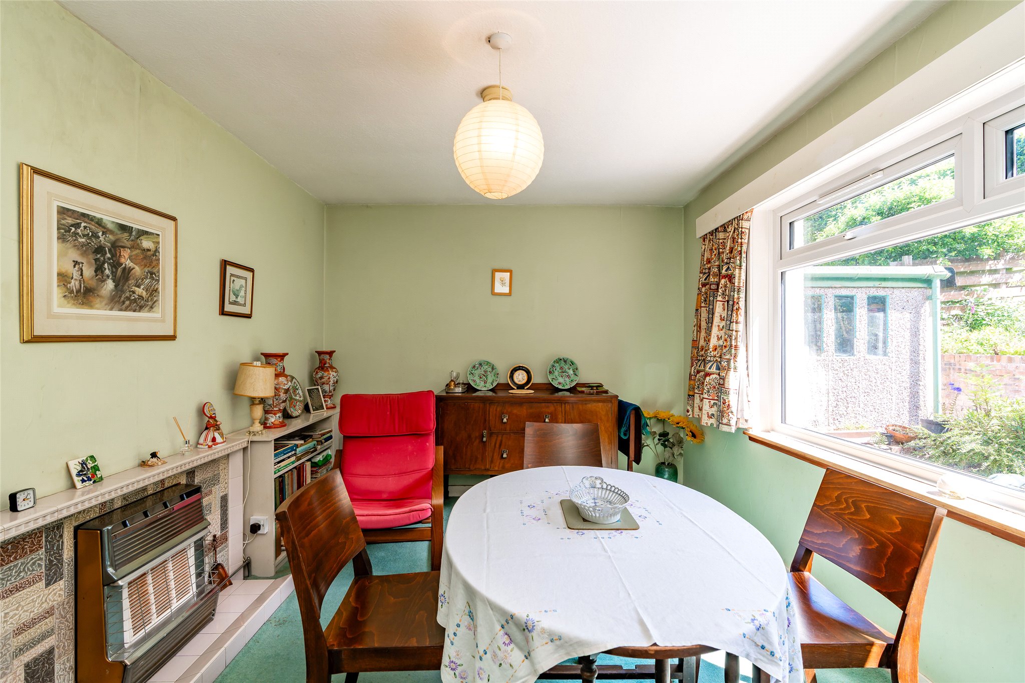 The ground floor features a bright and welcoming entrance hall leading into a spacious bay-windowed living room, a well-appointed kitchen, and an adjacent dining area that overlooks the rear garden—perfect for entertaining or family meals. Two well-proportioned bedrooms (Bedrooms 2 and 3), a family bathroom, and several built-in storage cupboards complete the ground level.