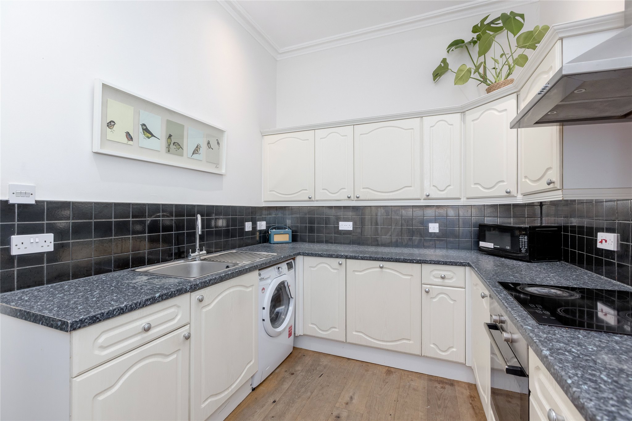 Accessed via a well-maintained communal stair, the apartment enjoys a peaceful position on the top floor. The generous living/dining room, situated to the front, is flooded with natural light through three large sash windows and offers a wonderful space for relaxing or entertaining. The adjoining kitchen is both bright and well-equipped, enjoying a pleasant outlook to the rear.