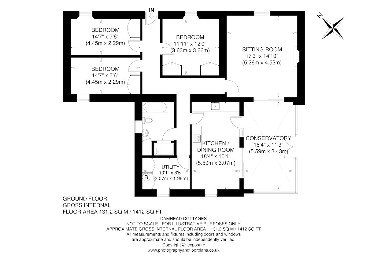 Accommodation: Entrance Hall, Sitting Room, Dining Kitchen, Conservatory, Three Double Bedrooms, Bathroom and a Utility Room.