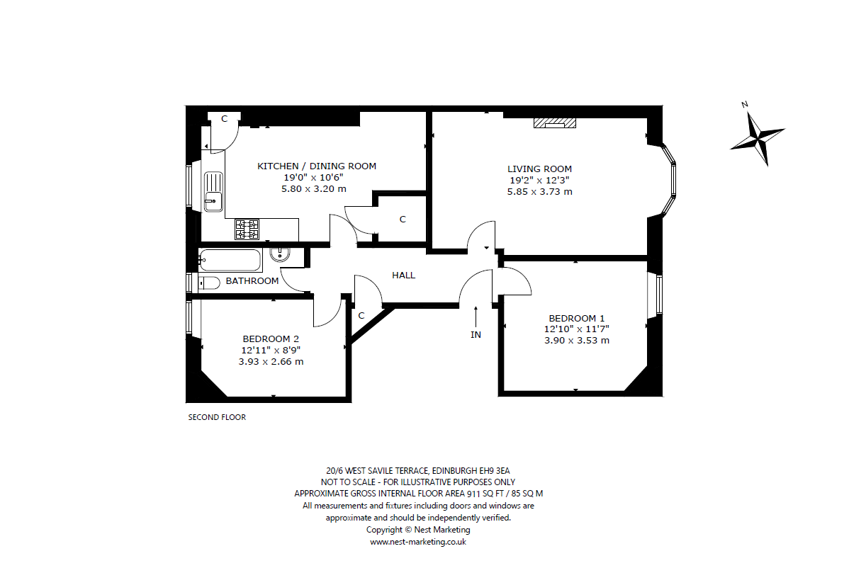 Located in Edinburgh’s desirable Blackford area, this well presented second-floor flat combines classic period features with modern touches. 20/6 West Savile Terrace is a traditional Victorian tenement seamlessly blending residential living with convenient city access. The property’s excellent condition, spanning approximately 911 sq ft, features a generous east facing bay-windowed living room, offering a bright and airy living space with ample room for relaxing or entertaining.
