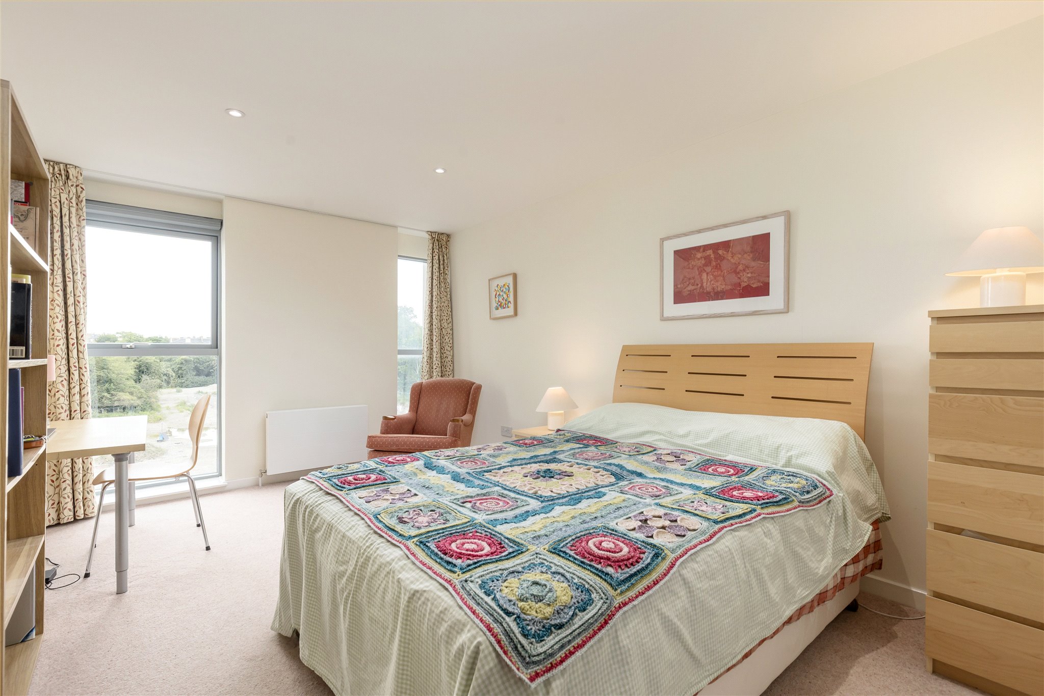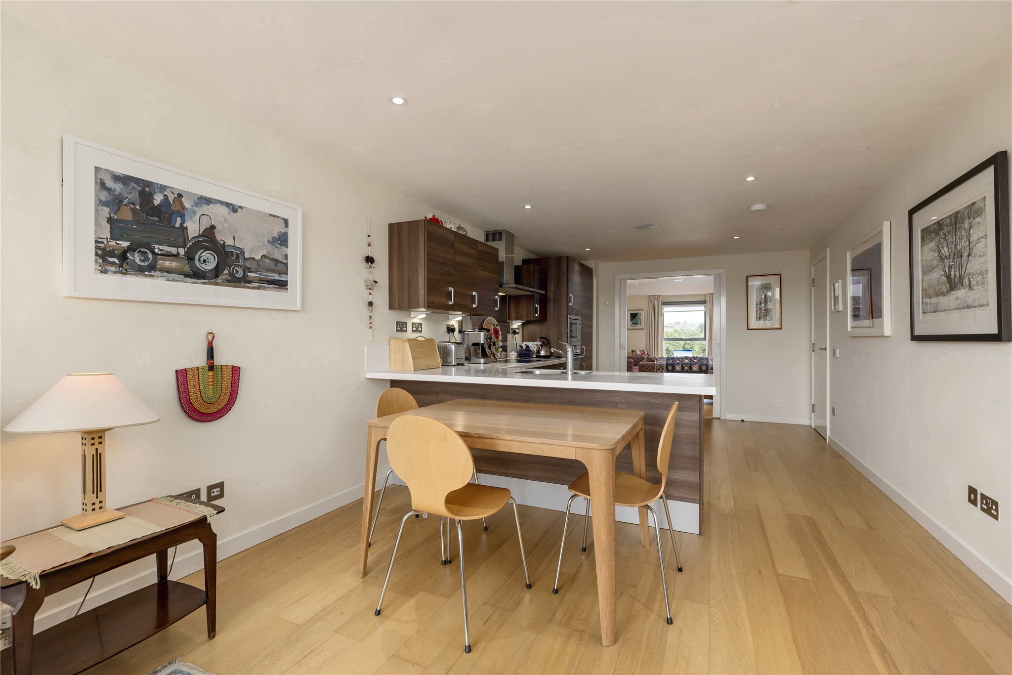 A superbly presented three bedroom apartment situated on the third floor of a modern development on Dundas Street, in the heart of Edinburgh’s New Town. This stylish and spacious flat offers contemporary living with the benefit of a secure underground parking space, lift access, a large, private storage room, and a desirable open-plan layout ideal for modern city lifestyles.