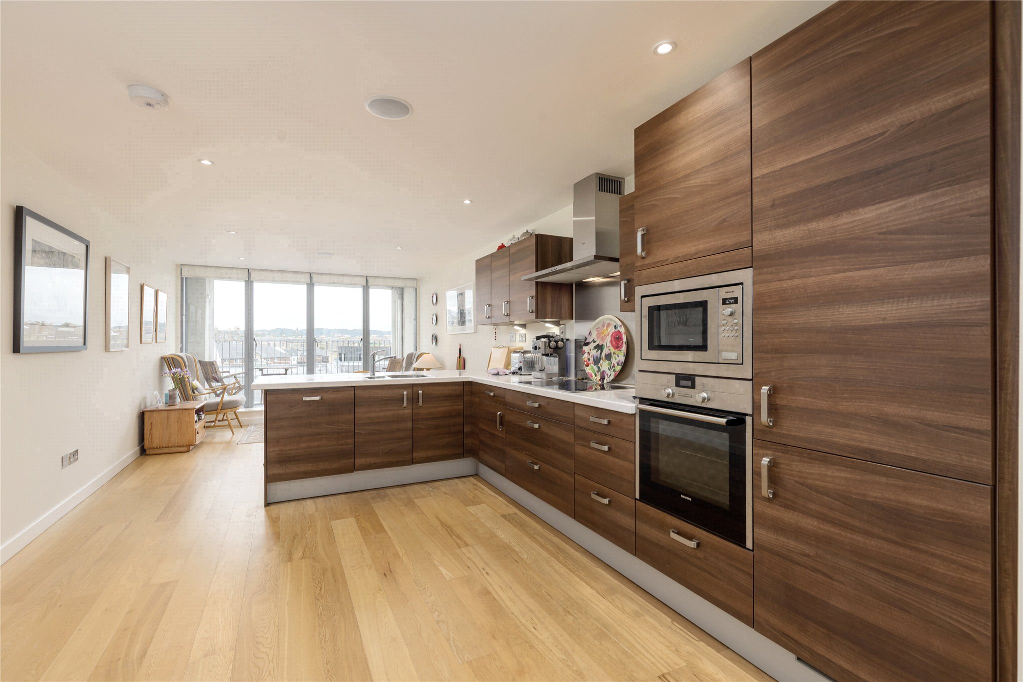 The property consists of a fabulous open plan kitchen/ dining room leading to a large balcony, perfect for al fresco dining. The sitting room also connects to the kitchen but useful sliding doors allow separation if desired. There are three well sized double bedrooms, one with ensuite, as well as a family shower room and plentiful storage. Both bathrooms benefit from underfloor heating. A large, welcoming hallway completes this property.