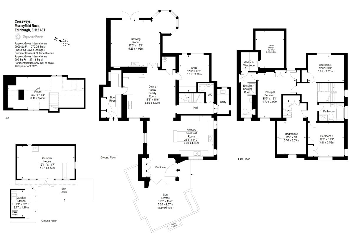 First Floor Bedrooms: The principal bedroom benefits from a walk-in wardrobe and en-suite shower room. There are two further double bedrooms and a versatile fouth double bedroom featuring a newly installed staircase leading to a loft room, ideal as a children’s den, home office, or extra bedroom.