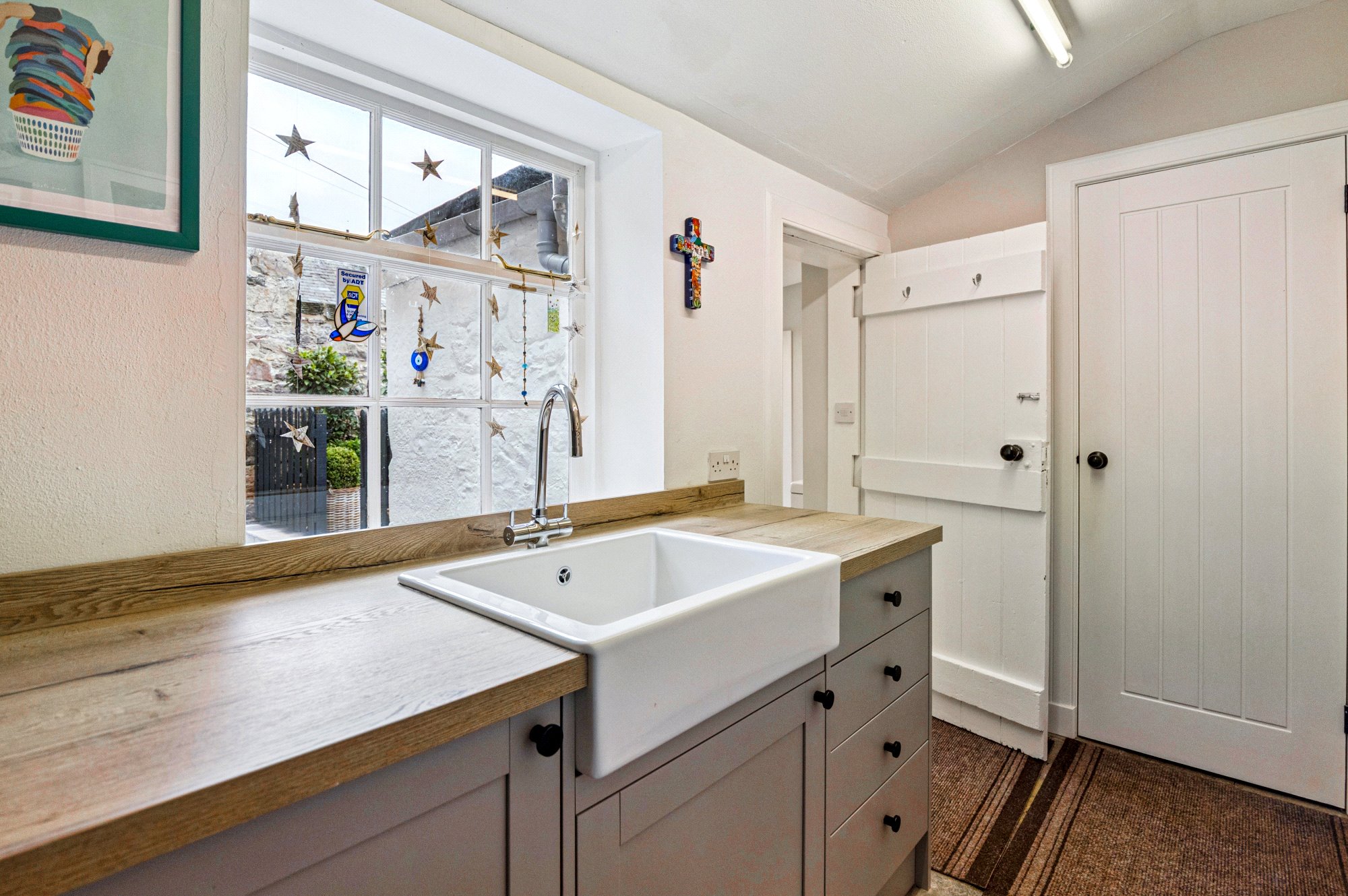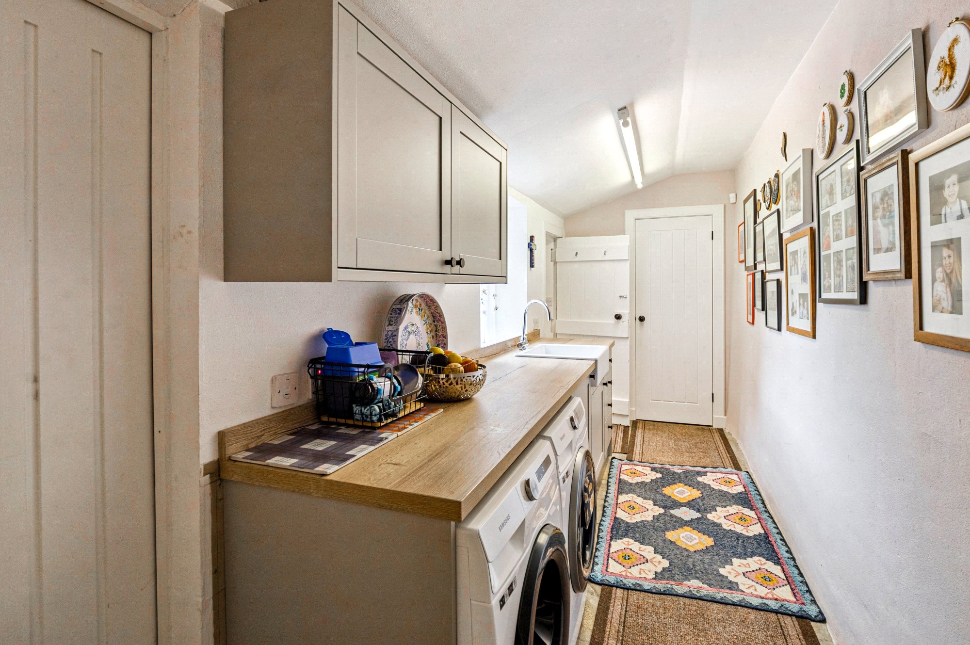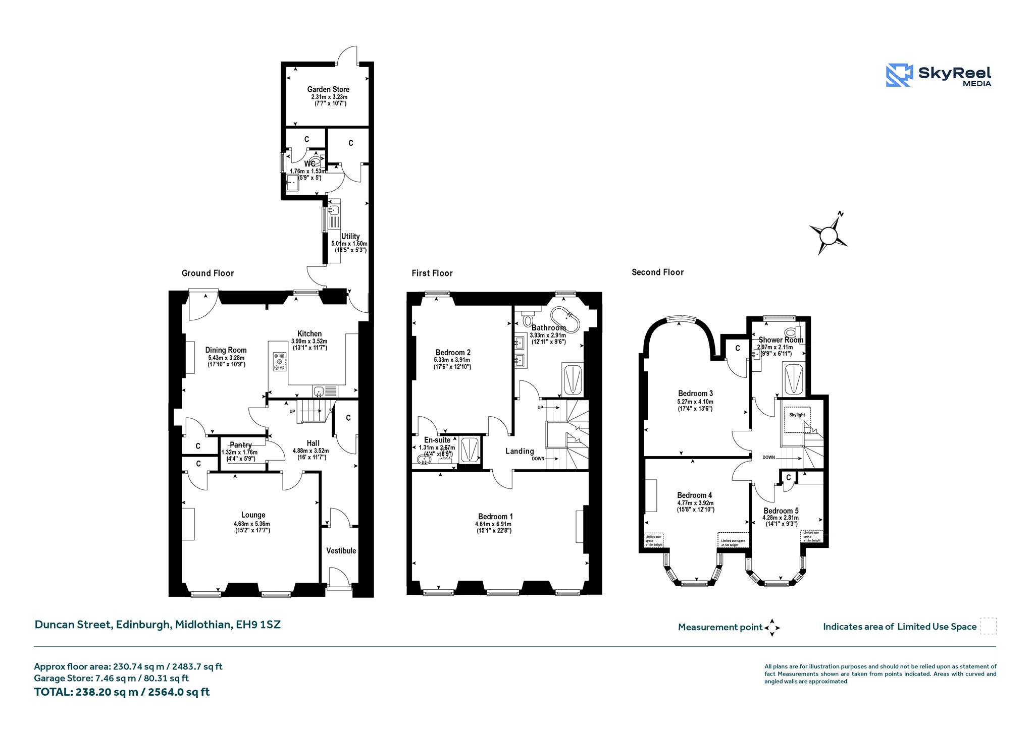 Sitting room, kitchen/ dining room, utility, WC, five bedrooms, three bathrooms and garden store.