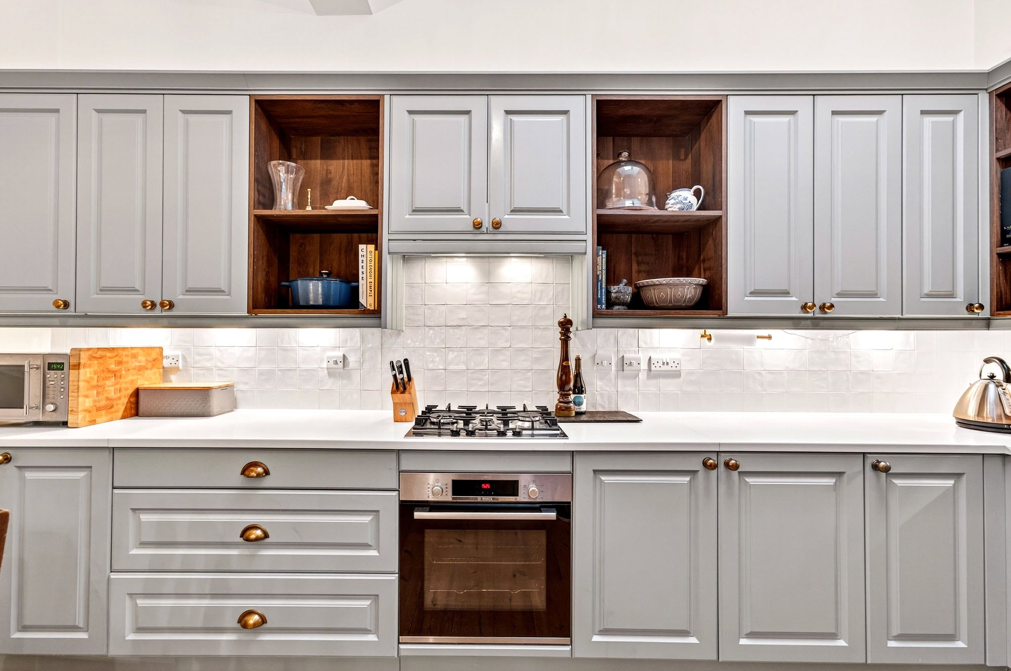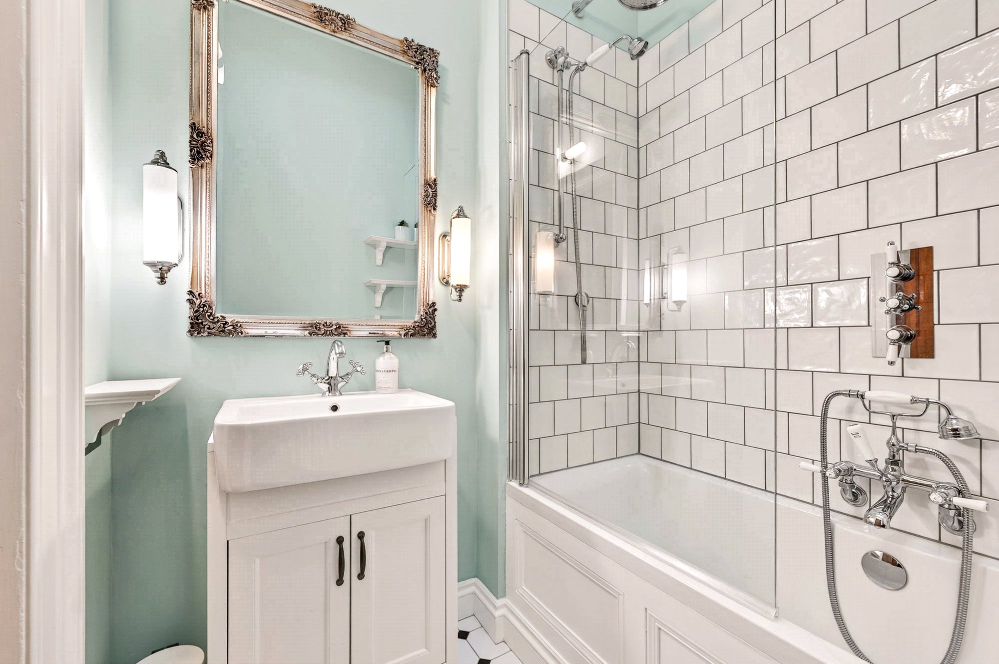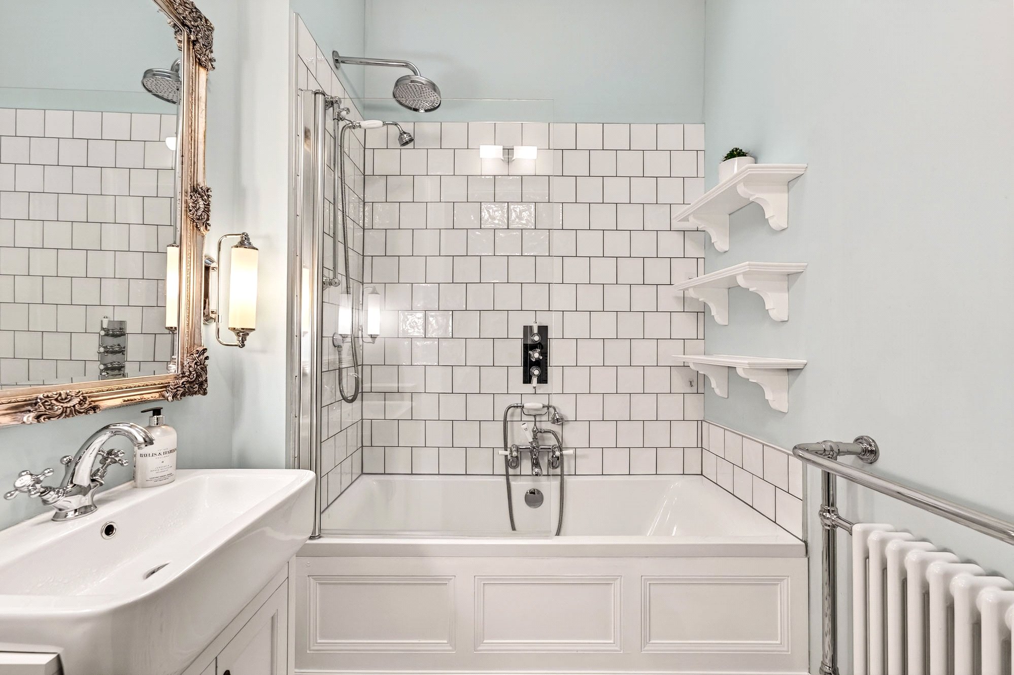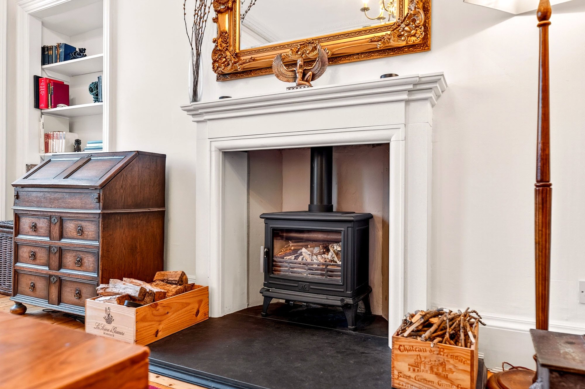 The welcoming hall leads to all rooms, beginning with a bright and generously sized living room, a perfect space for entertaining or relaxing, which retains much of its period charm and is fitted with a DEFRA-approved log burning stove. The contemporary kitchen has been tastefully updated, offering excellent storage, quality appliances, and ample workspace, while harmonising seamlessly with the property’s traditional features. Both bedrooms are well-proportioned doubles; the principal bedroom benefits from a peaceful outlook and plentiful storage, and the second bedroom is ideal for guests, a home office, or flexible use. The stylish bathroom features a modern suite with shower-over-bath, underfloor heating and a separate WC adds convenience. Two spacious floored lofts with lighting and electricity are accessed via convenient pull-down ladders within the flat, providing extensive storage or workbench space. Valuable additional storage is afforded by a private cellar.