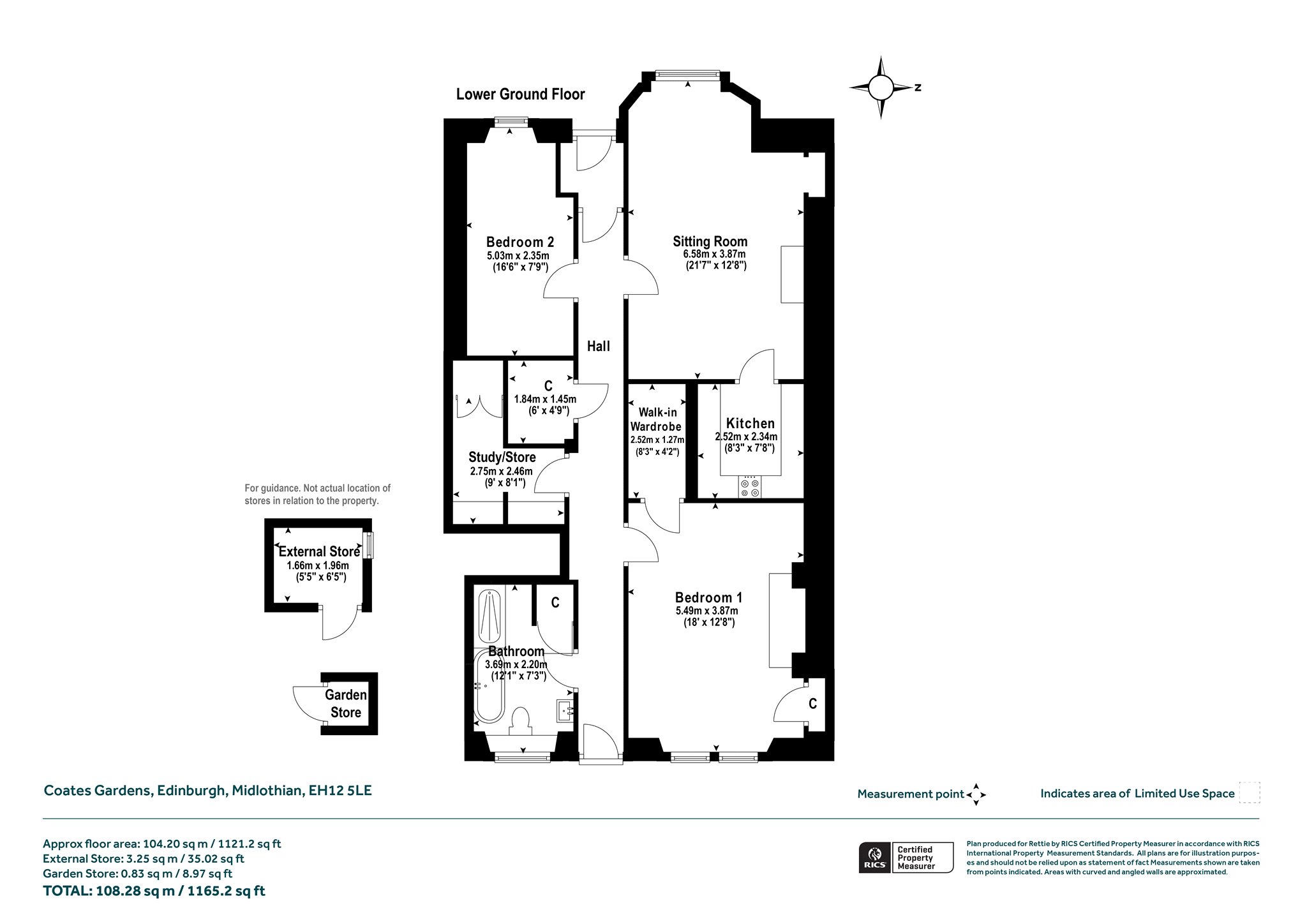 Entrance Vestibule, Hall, Sitting Room/Dining Room, Kitchen, Principal Bedroom with walk-in Wardrobe, Bedroom Two, Bathroom, Study Space, Hall Storage Cupboard