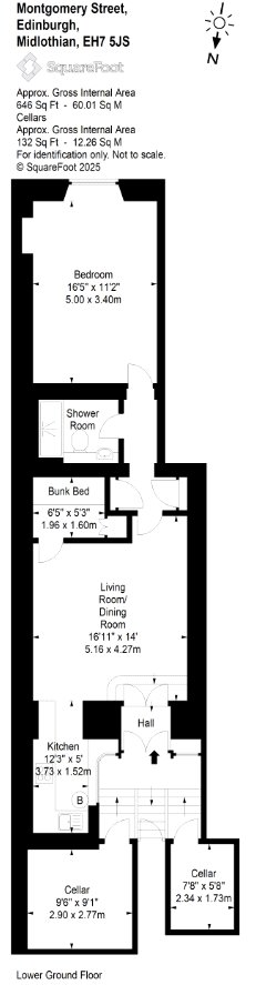 Adding to the appeal are two generous under-pavement cellars, ideal for bikes, tools or additional storage. The flat also benefits from main door access, offering privacy and convenience, and a shared south-facing communal garden, which enjoys sunshine throughout the day.