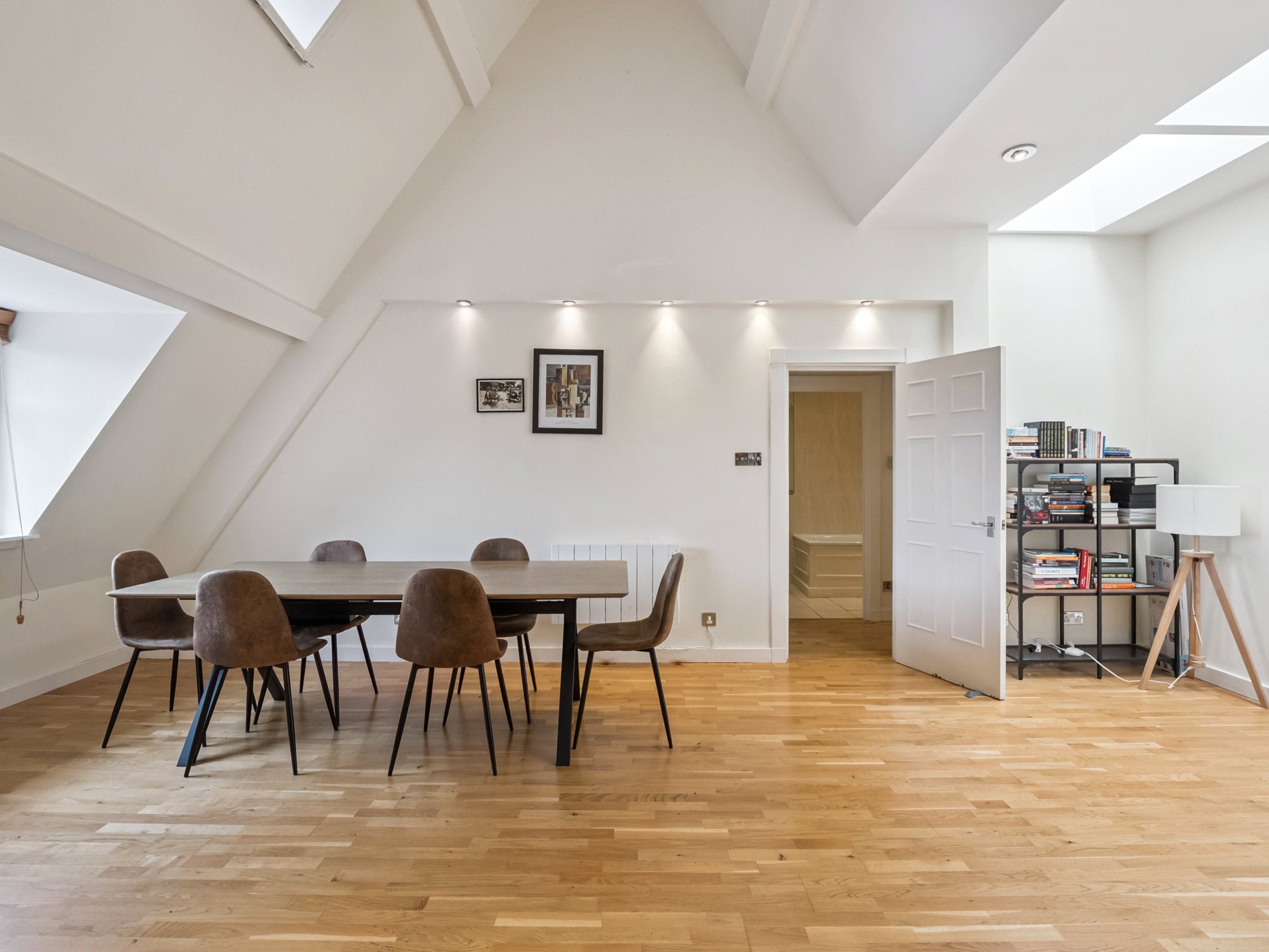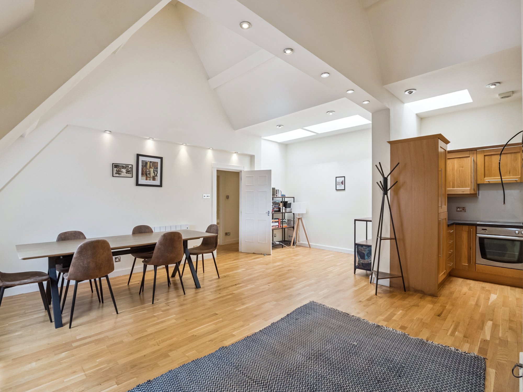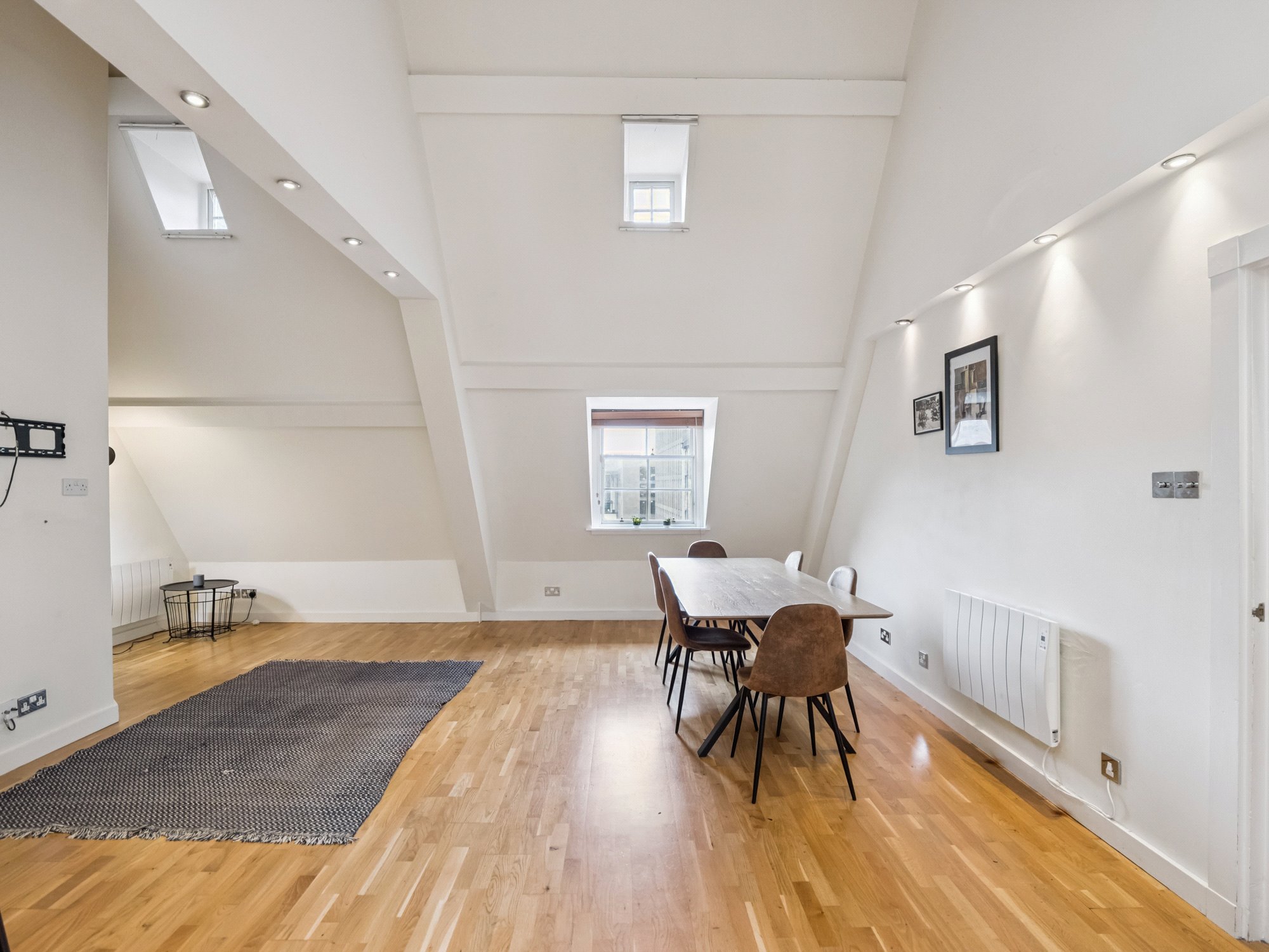Occupying a prime forth-floor position within the magnificent former St Patrick’s Roman Catholic School with lift, Flat 44 offers an exceptional opportunity to own a beautifully proportioned one-bedroom apartment in an exquisite B-listed building designed in 1905 by renowned Scottish architect John Alexander Carfrae. This impressive flat retains striking original features, including soaring vaulted ceilings, and boasts a substantial loft space providing excellent storage or potential for creative use. The spacious open-plan lounge, dining, and kitchen area is flooded with natural light from three Velux windows, creating an inviting space ideal for relaxing and entertaining. The large double bedroom is bright and welcoming, complemented by a built-in wardrobe. An immaculate three-piece bathroom, with a shower-over-bath, completes this stunning city home.