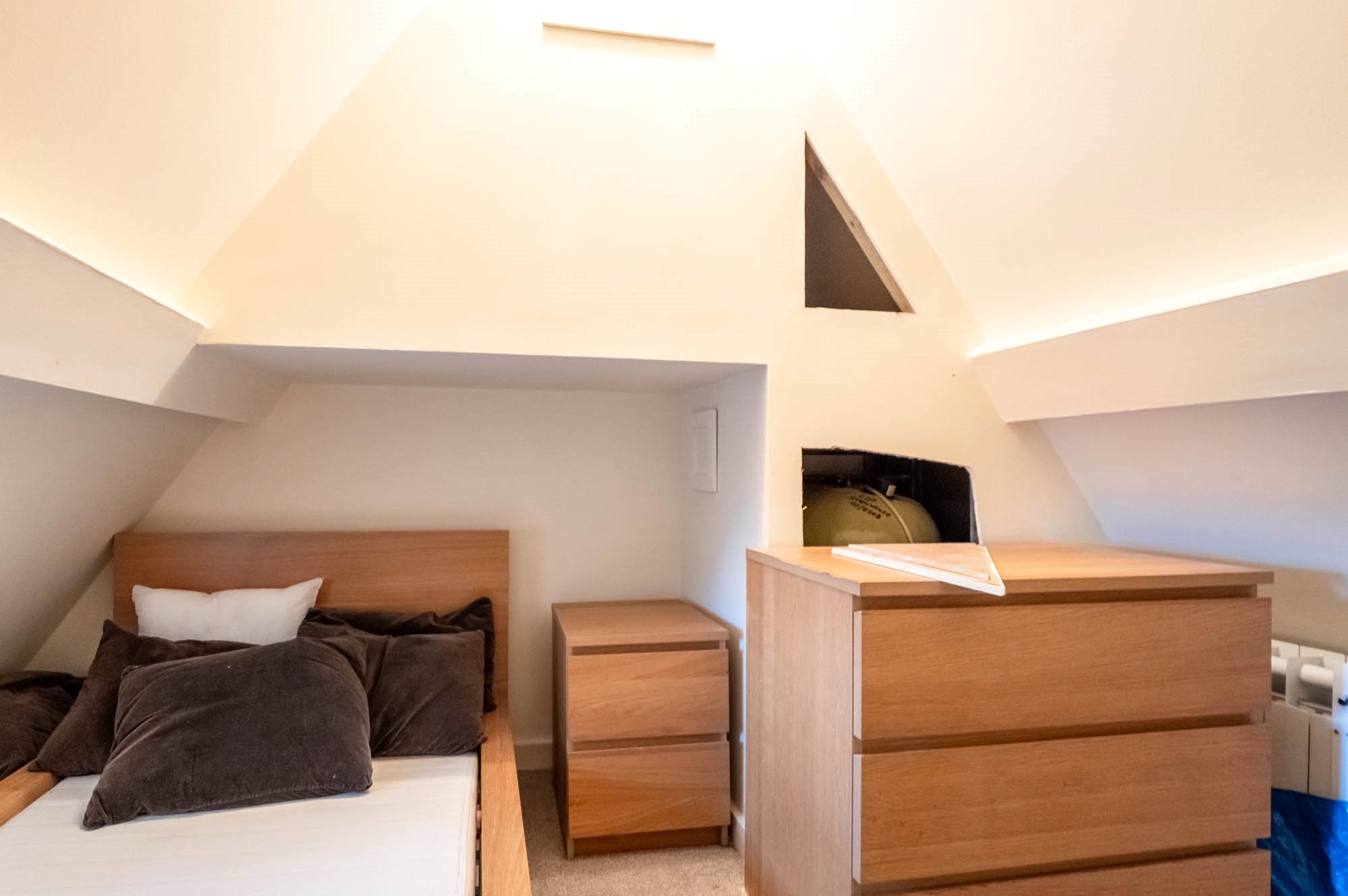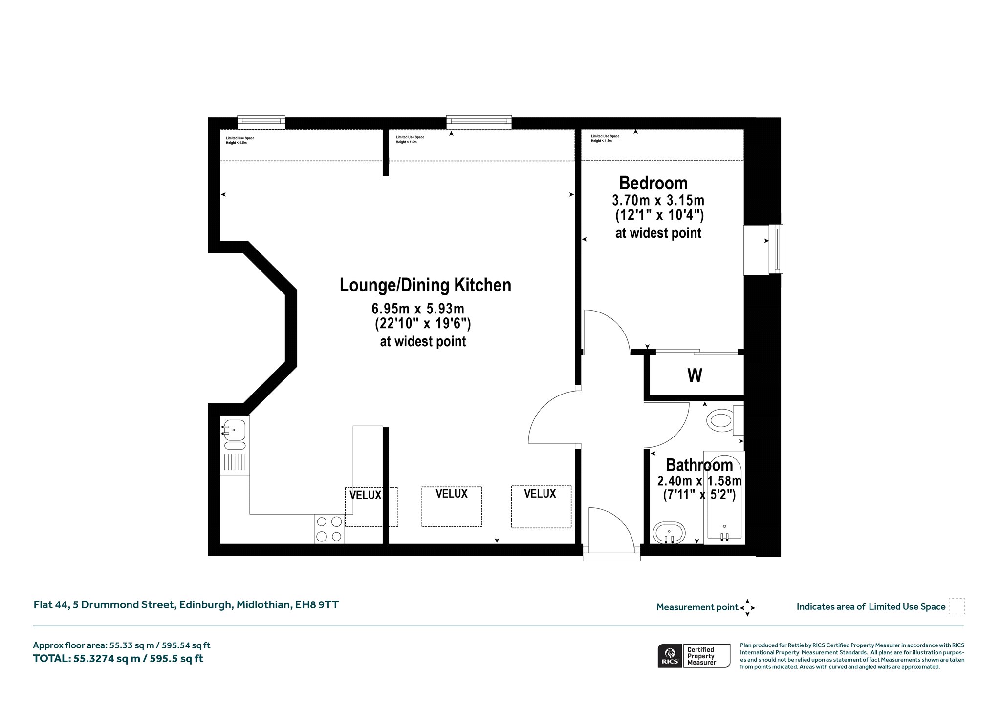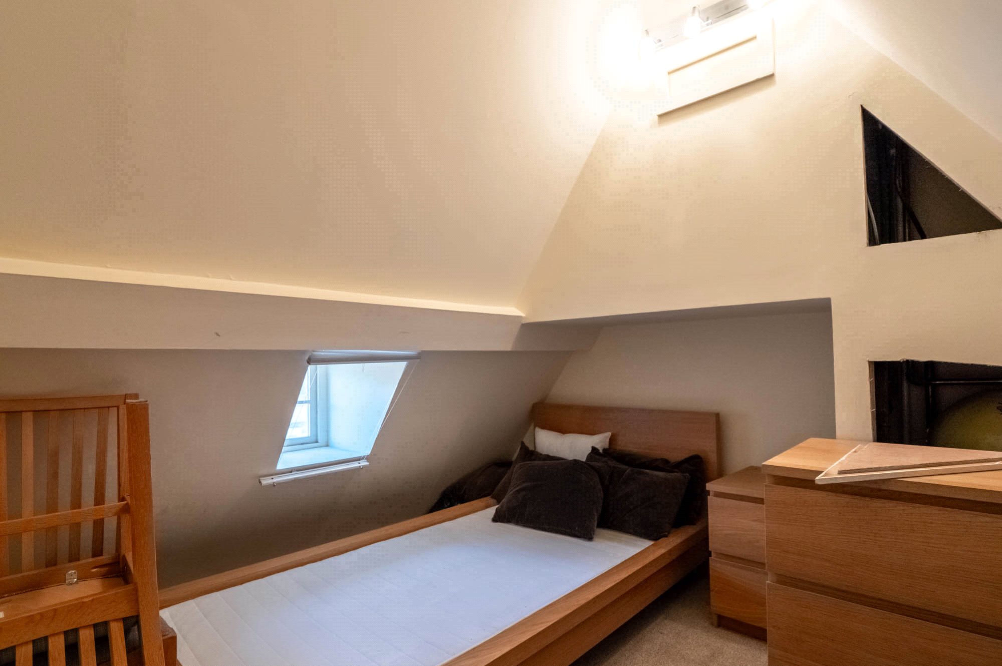 Occupying a prime forth-floor position within the magnificent former St Patrick’s Roman Catholic School with lift, Flat 44 offers an exceptional opportunity to own a beautifully proportioned one-bedroom apartment in an exquisite B-listed building designed in 1905 by renowned Scottish architect John Alexander Carfrae. This impressive flat retains striking original features, including soaring vaulted ceilings, and boasts a substantial loft space providing excellent storage or potential for creative use. The spacious open-plan lounge, dining, and kitchen area is flooded with natural light from three Velux windows, creating an inviting space ideal for relaxing and entertaining. The large double bedroom is bright and welcoming, complemented by a built-in wardrobe. An immaculate three-piece bathroom, with a shower-over-bath, completes this stunning city home.