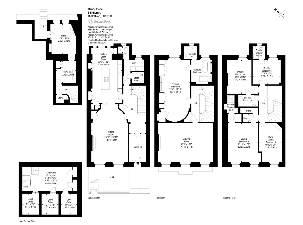 37 Manor Place is a distinguished stone-built townhouse in the heart of Edinburgh’s prestigious West End. Extending to approximately 3,589 sq ft, together with an additional 251 sq ft of lined cellars and stores, the property offers generous and flexible family accommodation.