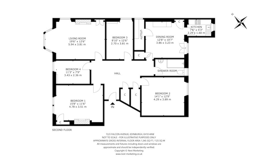 Kitchen, sitting room, dining room, four bedrooms, utility, shower room.