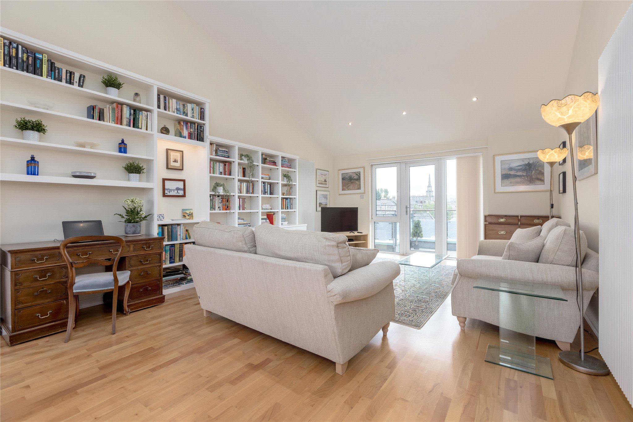 A beautifully presented two-bedroom, two-bathroom penthouse apartment with two roof terraces boasting spectacular panoramic views of Edinburgh Castle, the Firth of Forth and beyond to Fife. Located within a popular modern development, the apartment offers a spacious feel, benefits from a secure allocated underground car parking space and has excellent transport links to Edinburgh’s city centre. The property is in excellent condition throughout and boasts a range of features that make it an ideal home for professionals, couples, or those seeking a high-quality city base.
