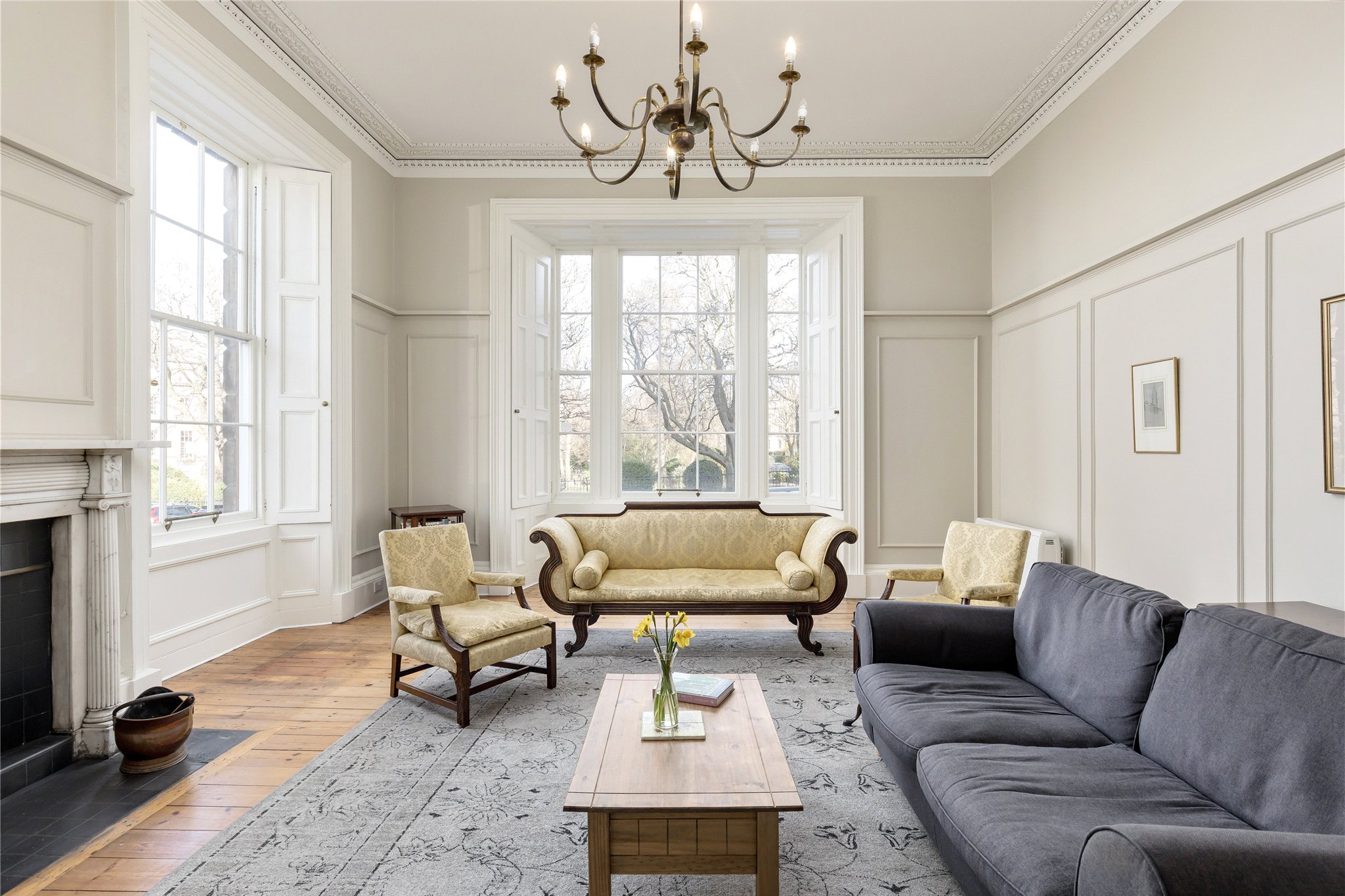 Set in one of the most coveted positions within Edinburgh’s historic New Town, 1 Gloucester Place is a distinguished main-door, ground-floor apartment extending to over 2,000 sq ft and enriched with fine period detail.