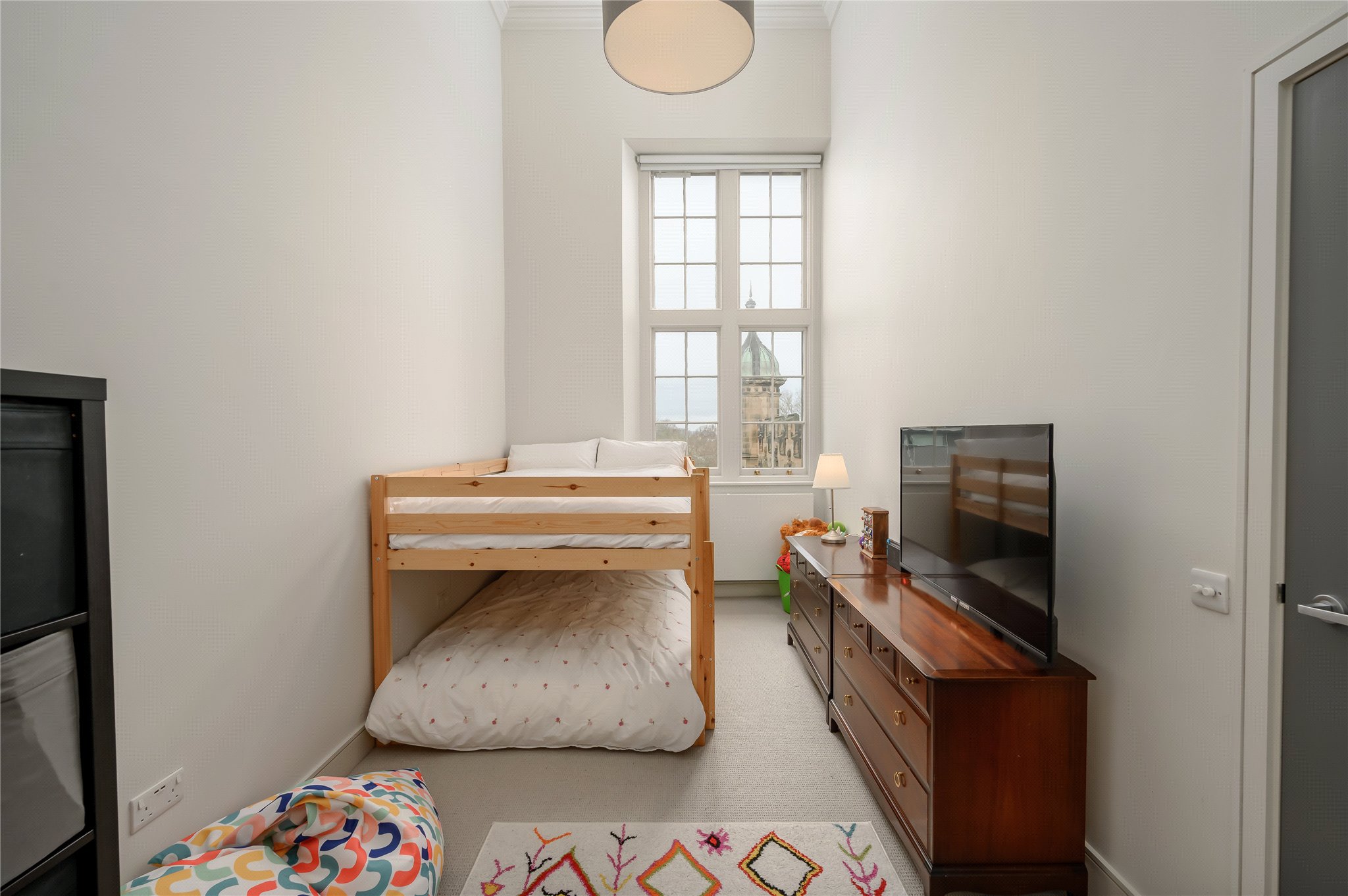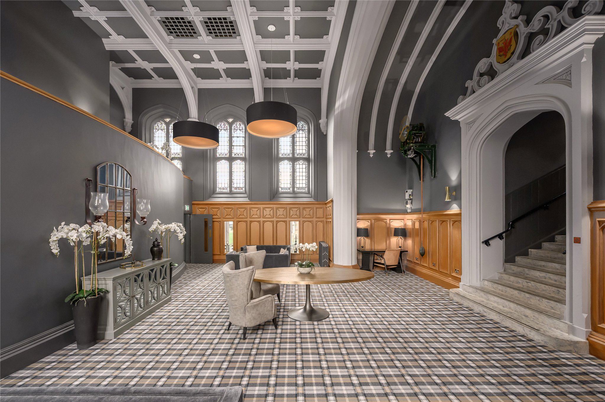 A stunning two-bedroom, two-bathroom, split-level apartment with lift set within the prestigious Donaldson’s development, one of Edinburgh’s most distinctive and sought-after residential addresses. Presented in immaculate condition throughout, the property combines contemporary design with striking architectural features, most notably its dramatic high ceilings and beautifully arranged split-level layout which creates a wonderful sense of space and light. The property further benefits from high-quality wooden flooring throughout the kitchen/dining room, living room, entrance hallway and utility.
