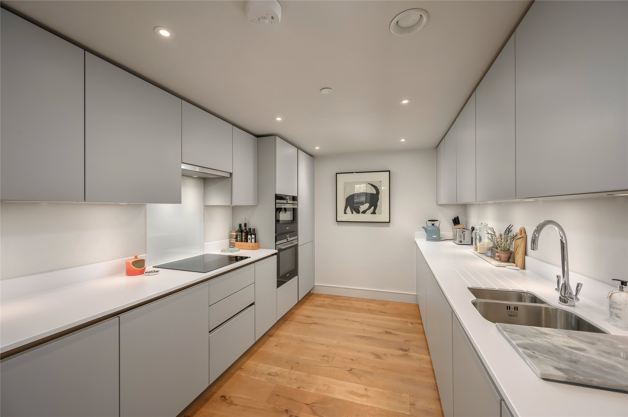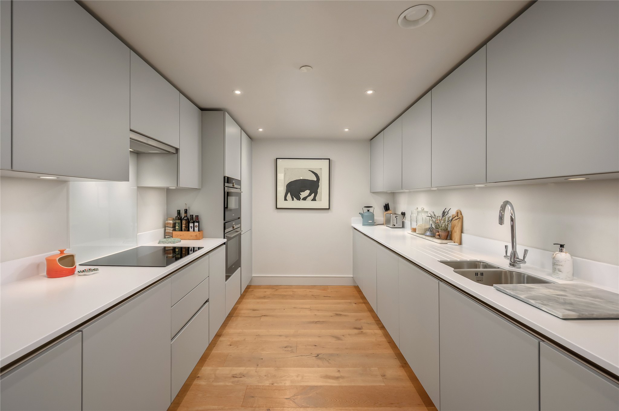Throughout the apartment, the high specification and careful presentation are immediately apparent, with the current owners maintaining the property to an exceptional standard. The layout is both practical and visually impressive, making the home equally suited to everyday living or entertaining guests. The property further benefits from two underground, gated and secure car parking spaces, as well as access to bike storage and well-maintained communal areas.