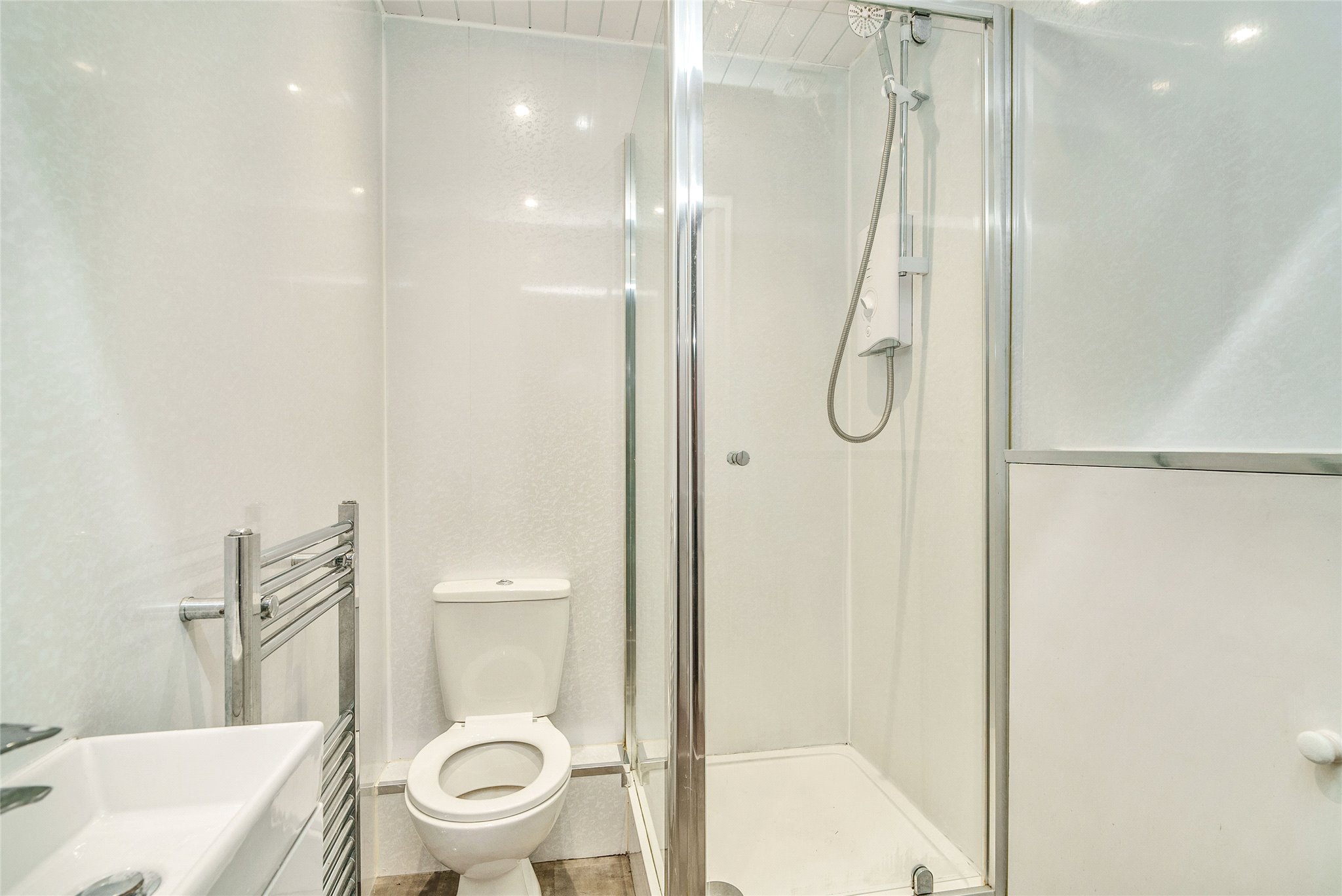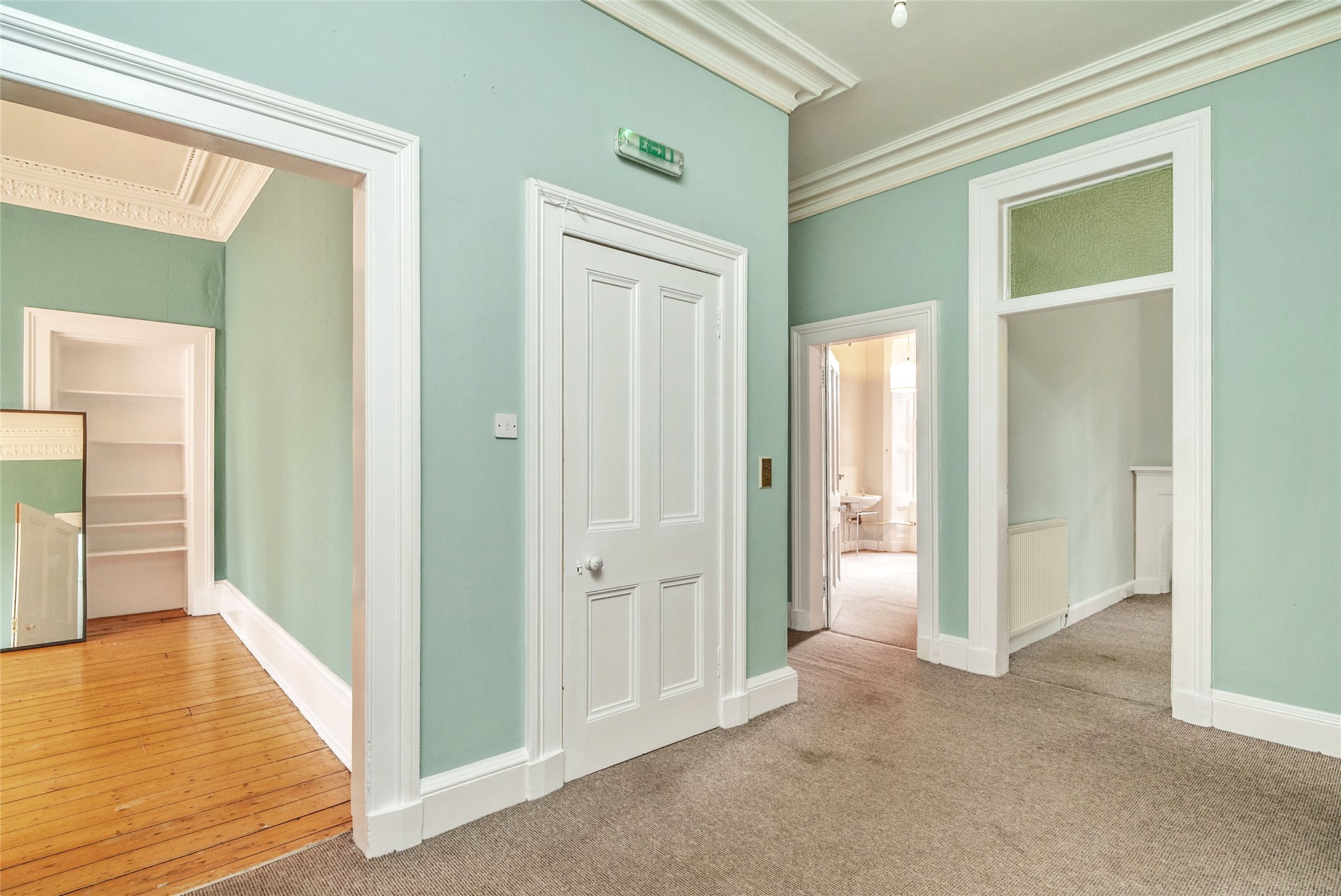 Large entrance hall, two large double bedrooms, three further bedrooms, kitchen, dining room, large sitting room, shower room and bathroom. Two large storage cupboards.
