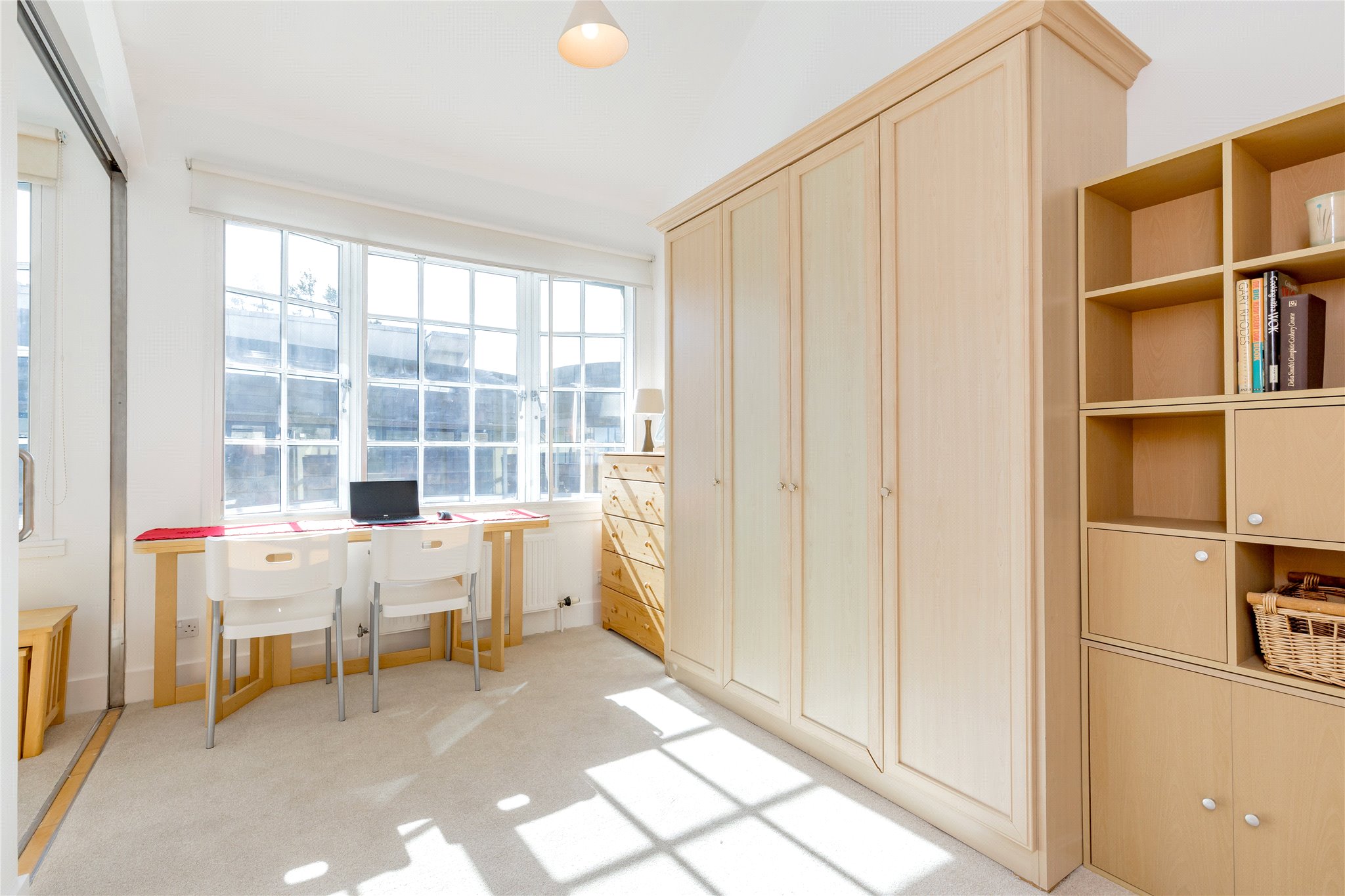 The accommodation is well laid out and presented in good order throughout. A welcoming hallway leads to a superb open-plan living, dining and kitchen area, which is ideal for entertaining and relaxing. Large windows flood this space with natural light, emphasising the dramatic ceiling height. There are two well-proportioned bedrooms, both offering flexibility for residents, guests or home working. The bathroom is fitted with a modern suite, while the cleverly designed mezzanine level provides additional living or working space overlooking the main reception area.