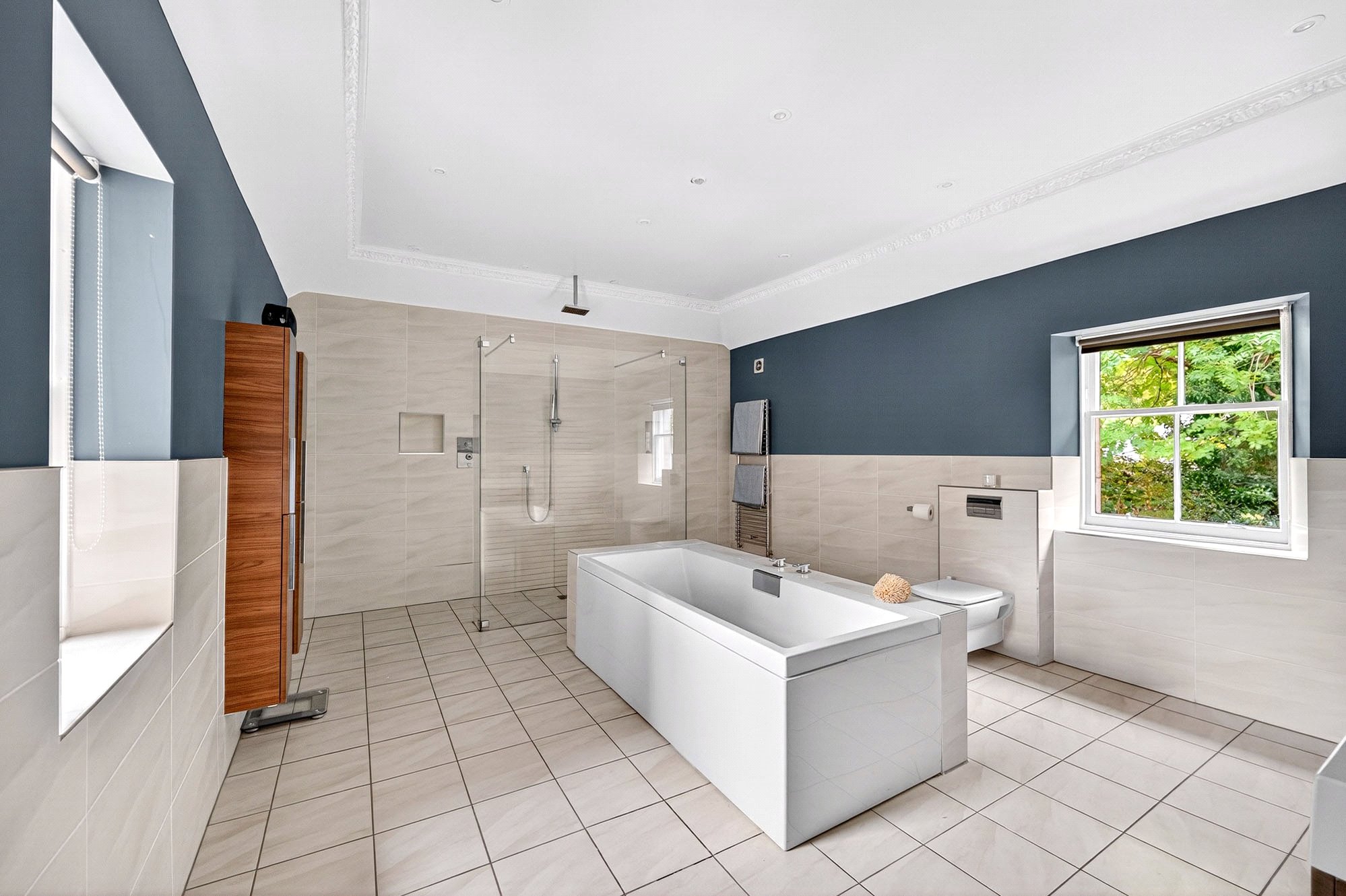 The first floor hosts the luxurious principal bedroom, complete with a contemporary en-suite shower room, along with three further generously sized double bedrooms. A spacious family bathroom completes the upper-level accommodation, while a bright central landing connects each room. On the lower ground level, a fully renovated basement offers a superb children’s playroom or games area, a large utility room, and additional storage, further enhancing the home’s practicality.