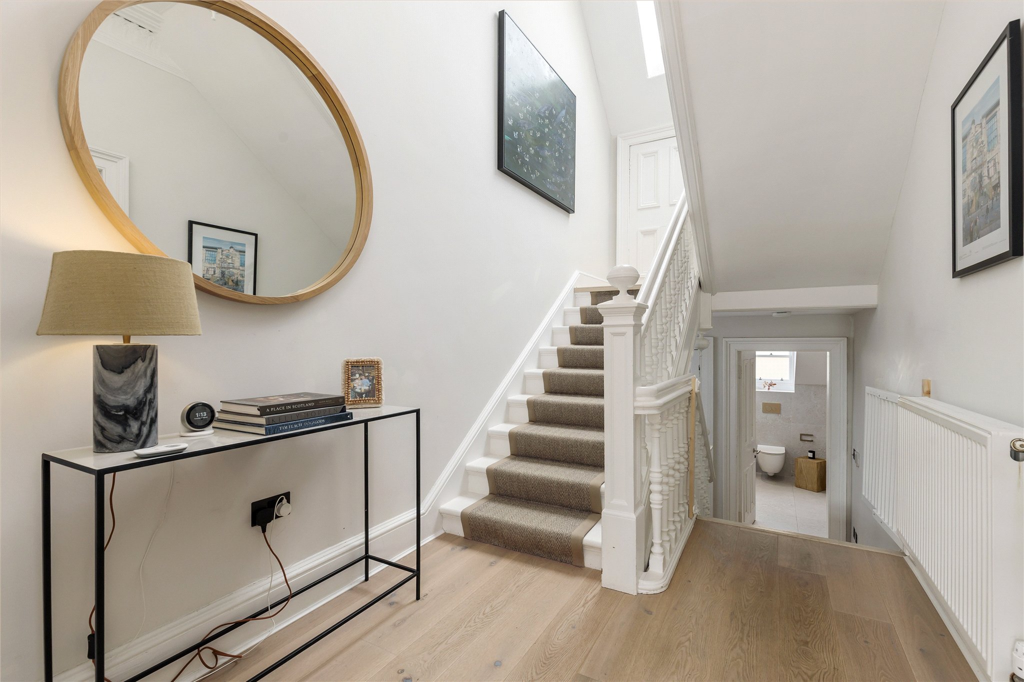 Entered through a beautifully landscaped front garden, on the ground floor is a wonderful kitchen/ dining room, leading to a useful WC and a large utility, opening out to the well-proportioned, peaceful garden.