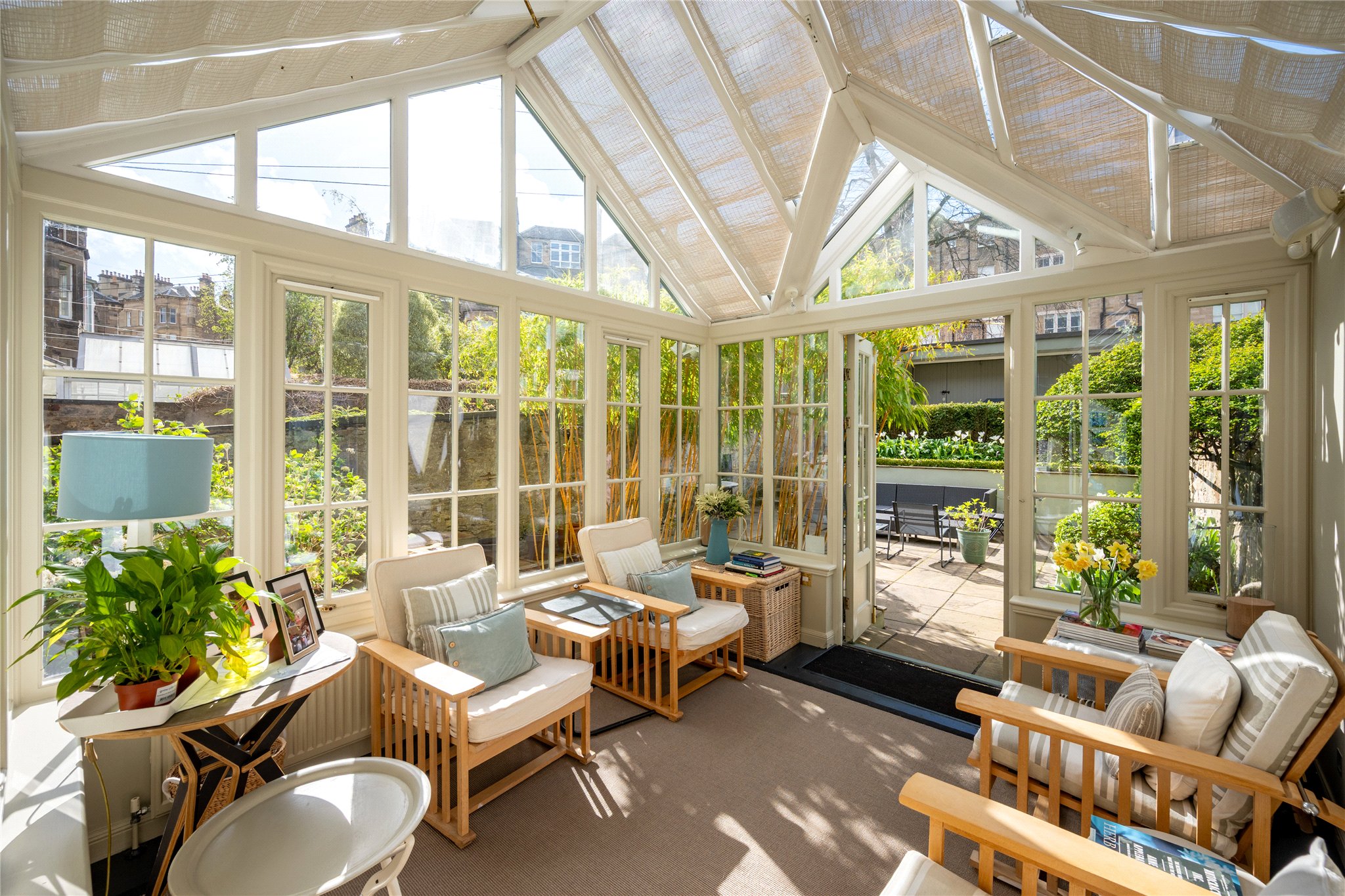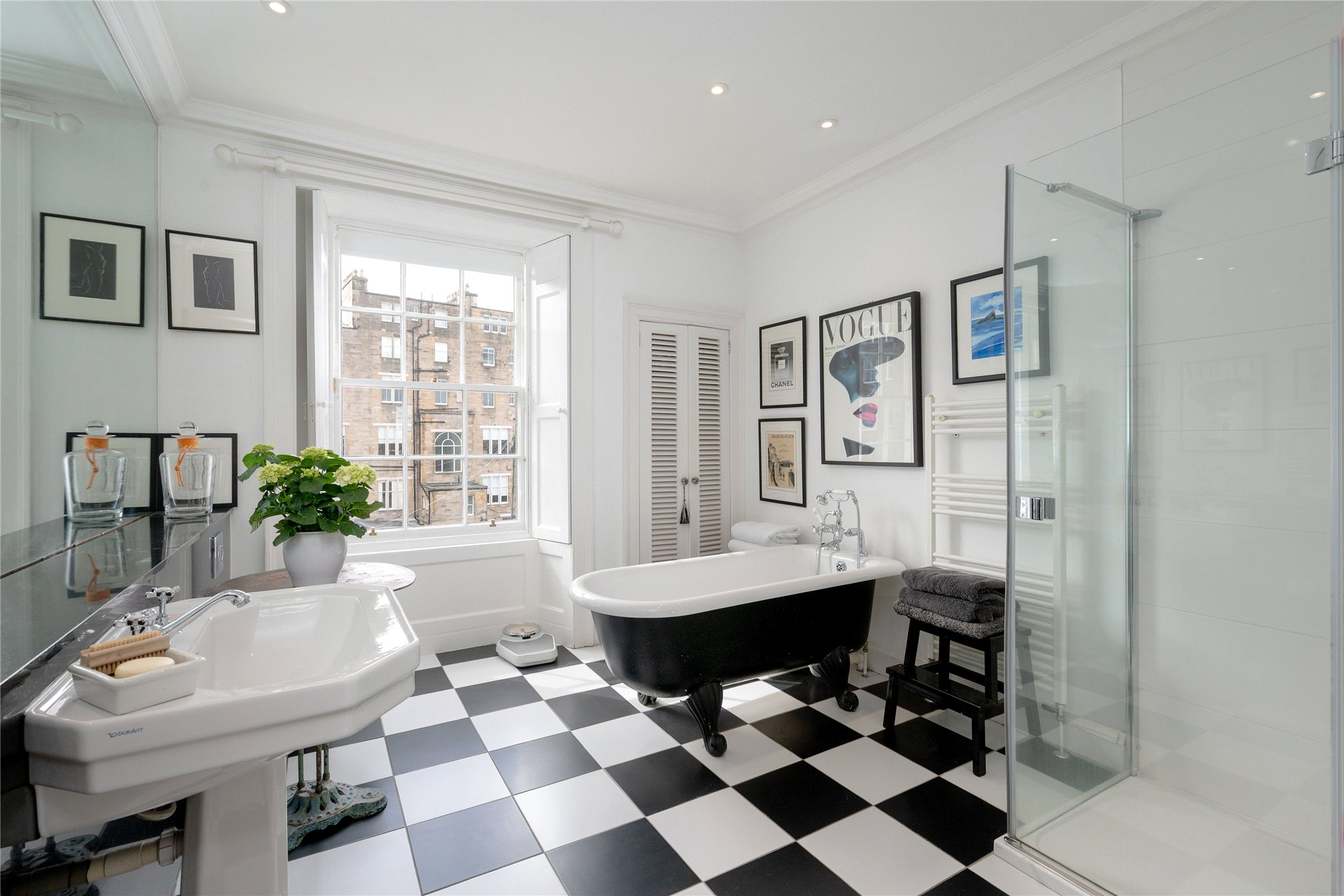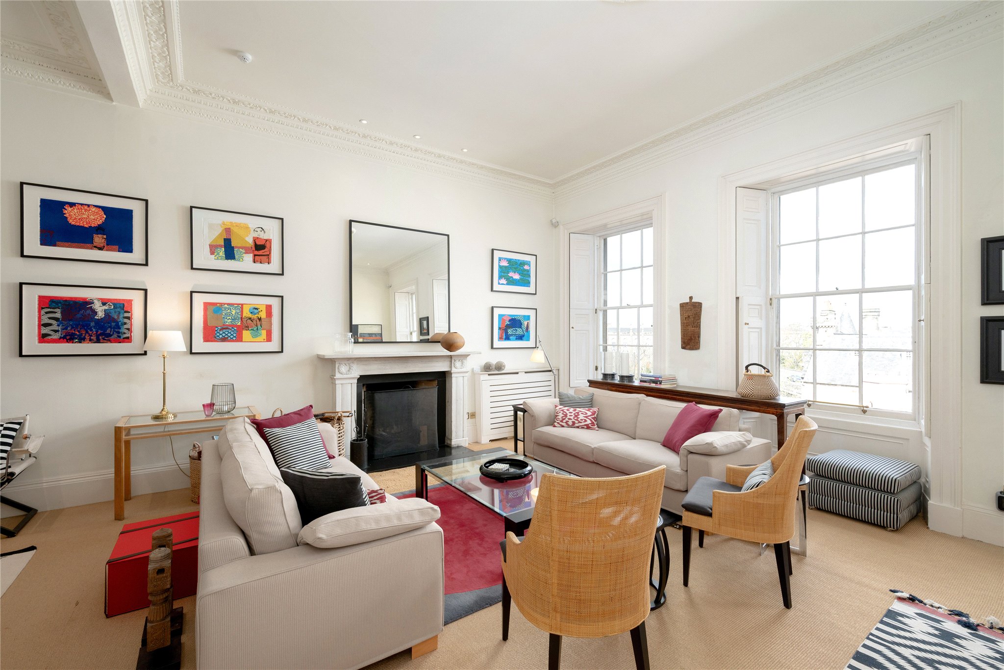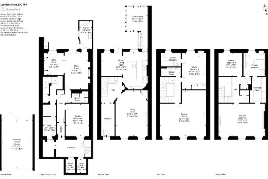 Unusually for central Edinburgh, the house enjoys both a private southfacing rear garden and a manicured front garden setting the house well back from the pavement, providing a rare sense of privacy and tranquillity. Further enhancing its appeal is a double garage to the rear, accessed via Lynedoch Place Lane.