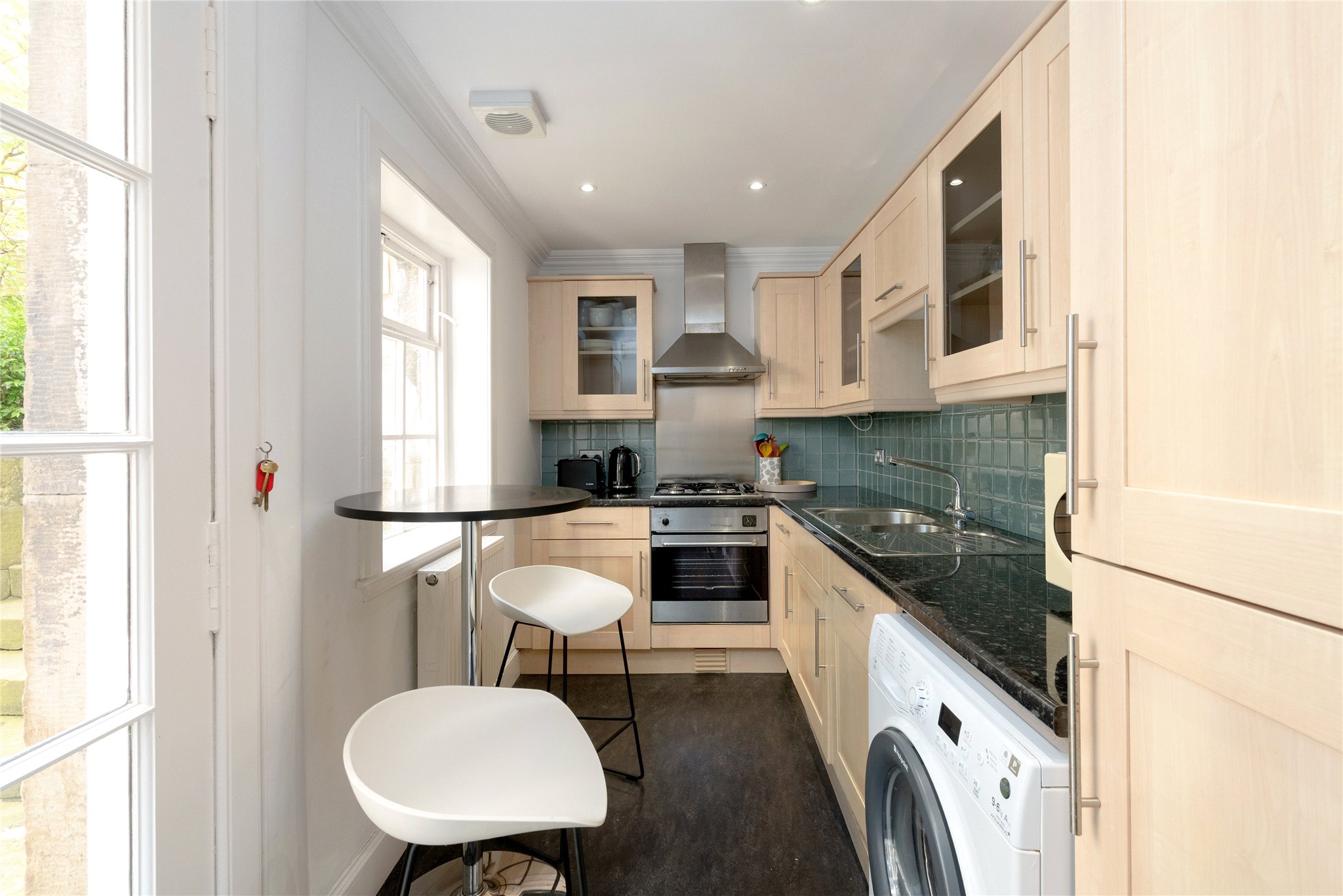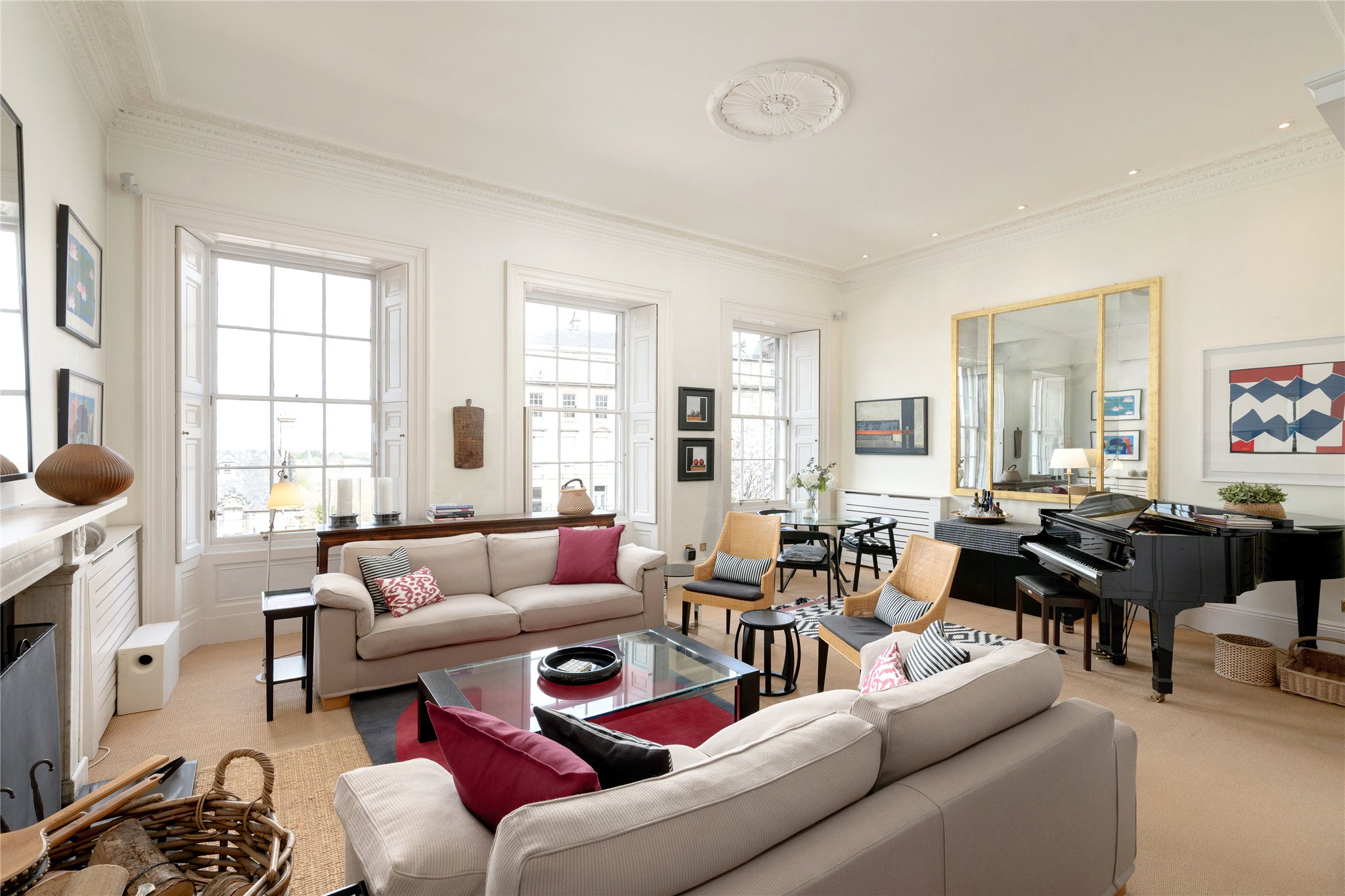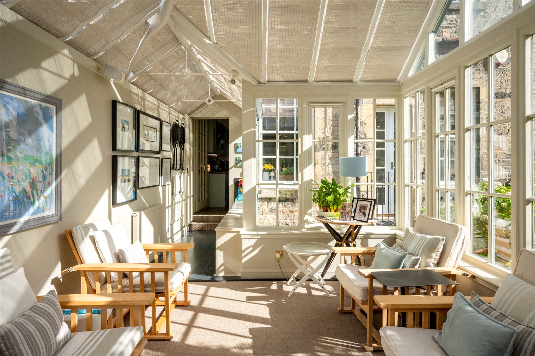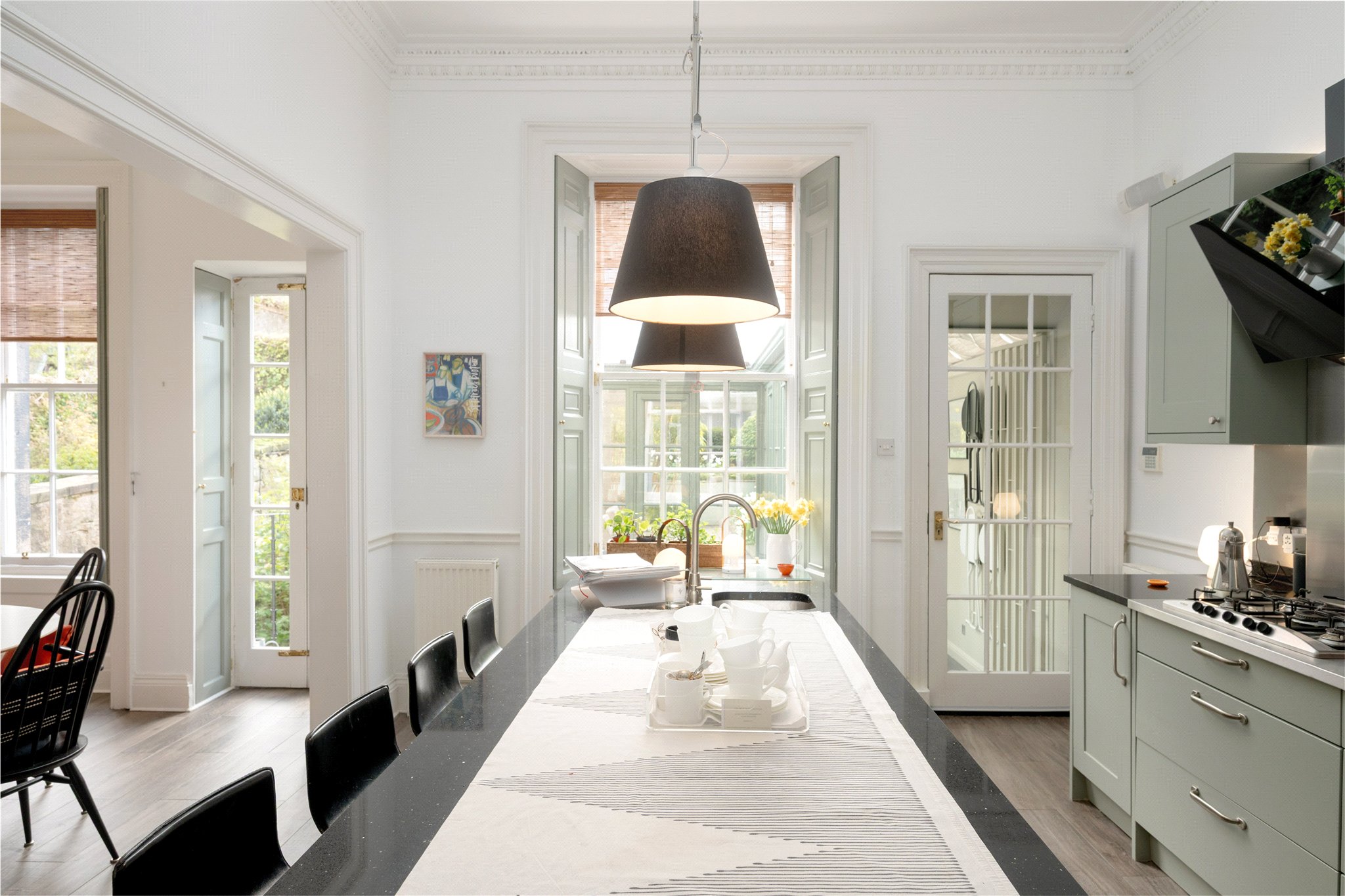 Unusually for central Edinburgh, the house enjoys both a private southfacing rear garden and a manicured front garden setting the house well back from the pavement, providing a rare sense of privacy and tranquillity. Further enhancing its appeal is a double garage to the rear, accessed via Lynedoch Place Lane.