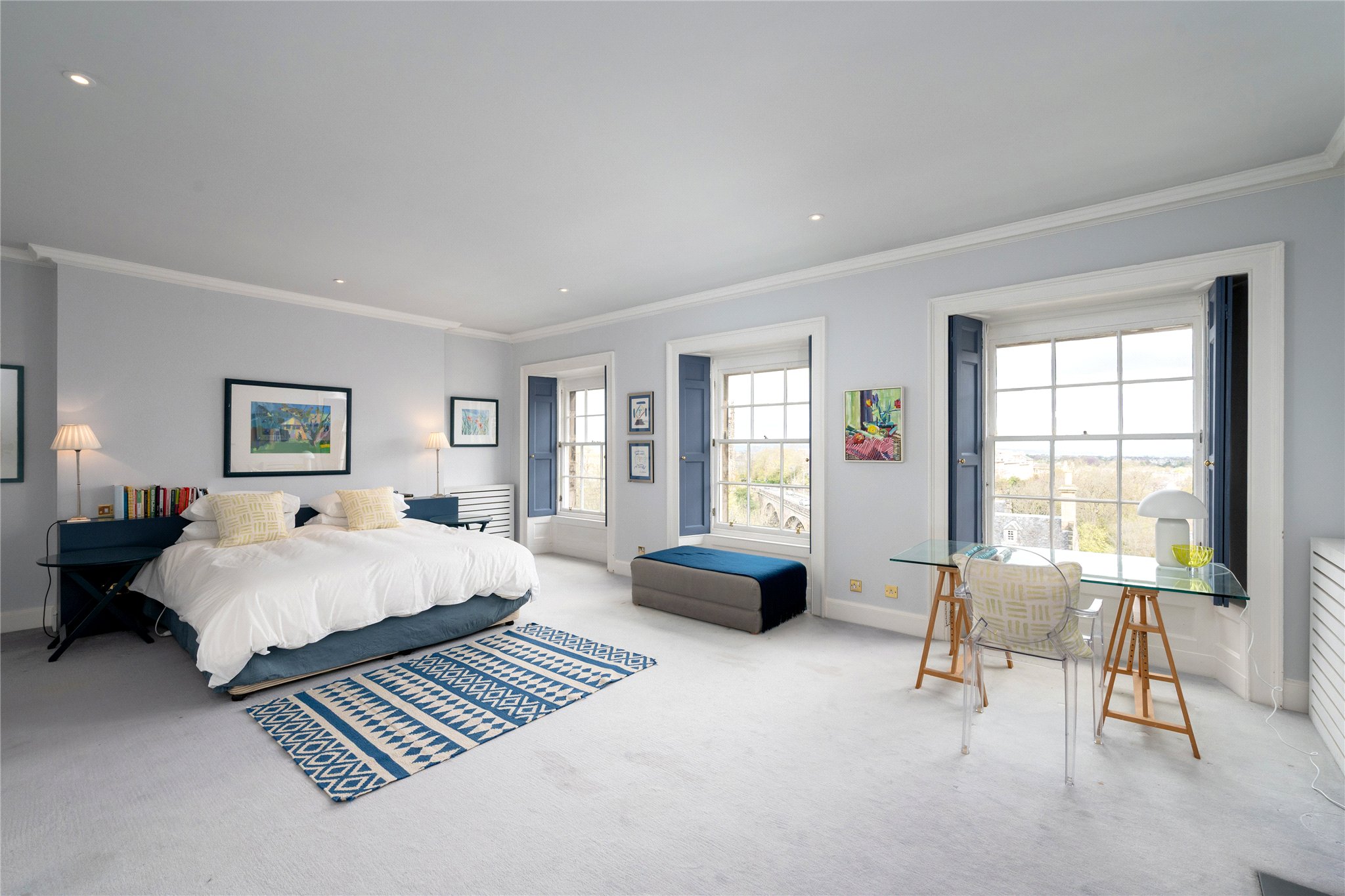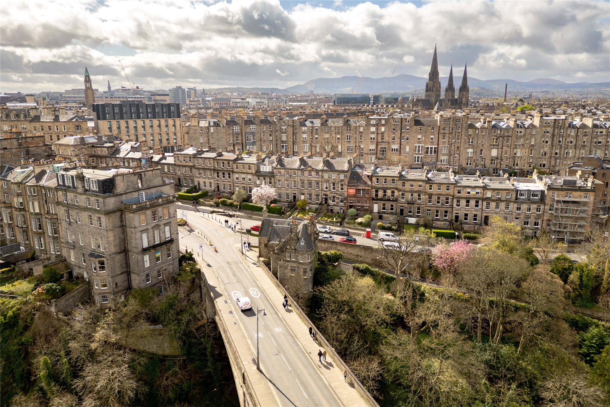 Set in a prime position just beyond the Dean Bridge, 14 Lynedoch Place is an elegant and substantial fourstorey townhouse commanding breathtaking panoramic views over the Dean Bridge and along the Water of Leith towards Fife. Extending to just over 4,000 sq ft (excluding the garage), the property combines classical Georgian proportions with thoughtfully upgraded interiors, having been meticulously maintained by the present owner over the past 20 years.