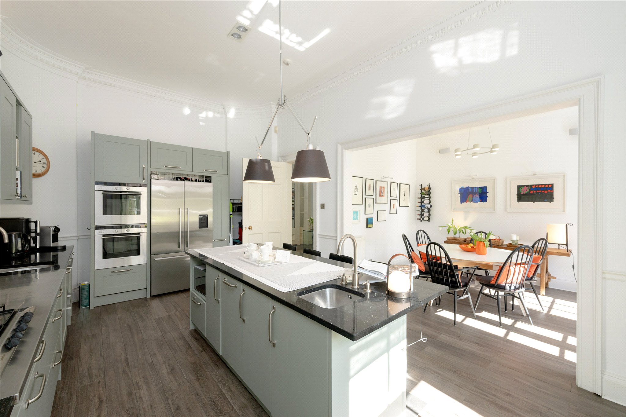 Arranged over four levels, the accommodation is exceptionally flexible and well suited to modern family living. Notable features include a striking central staircase crowned by a glazed cupola, a magnificent L shaped drawing room, and a superb openplan kitchen, dining and living space which flows seamlessly into a charming conservatory - ideal for both everyday living and entertaining.