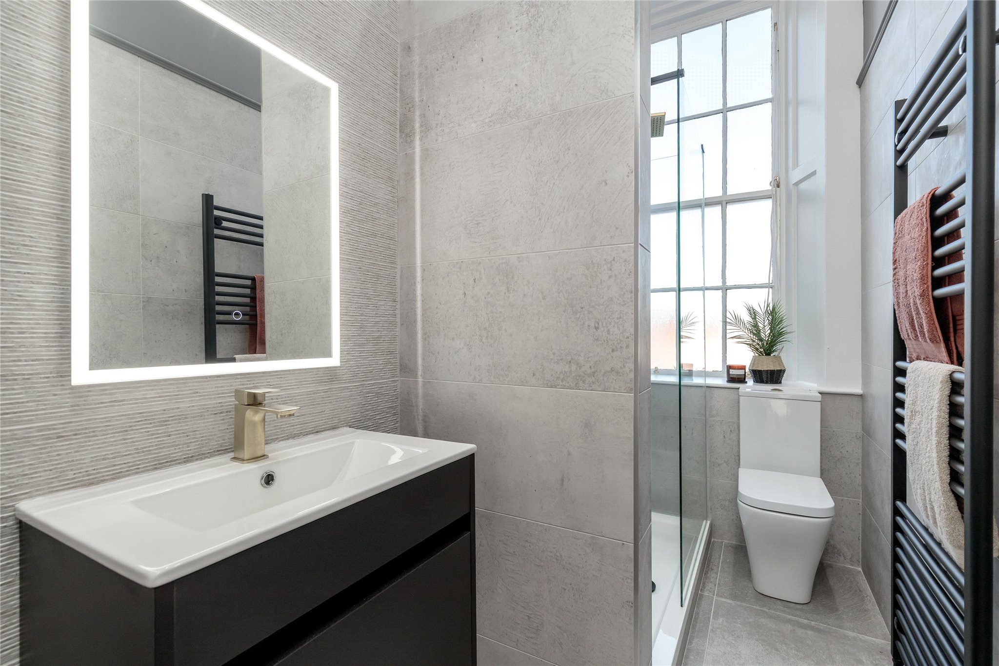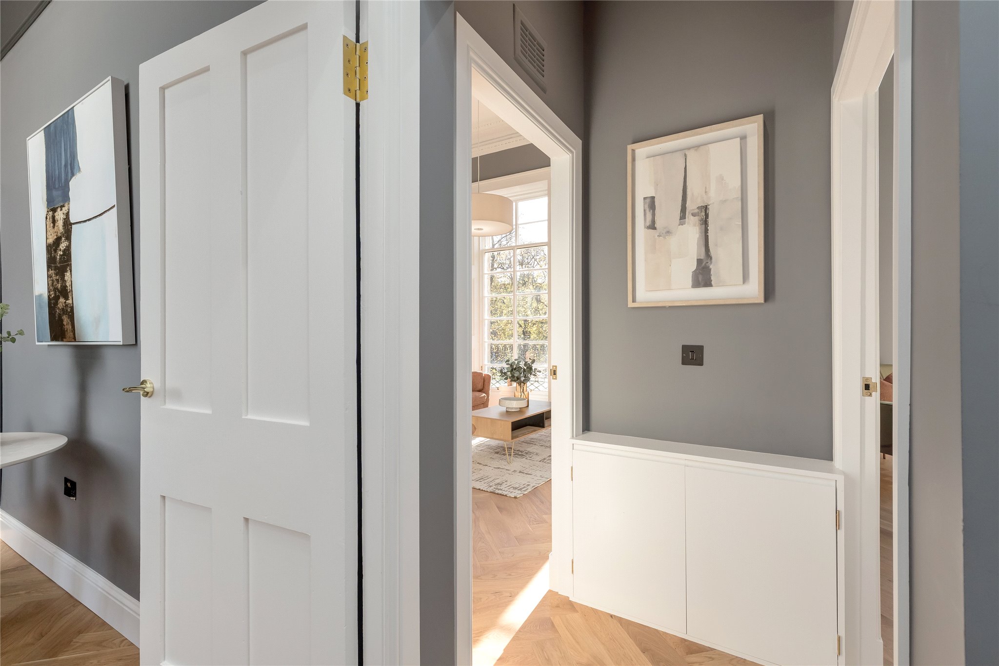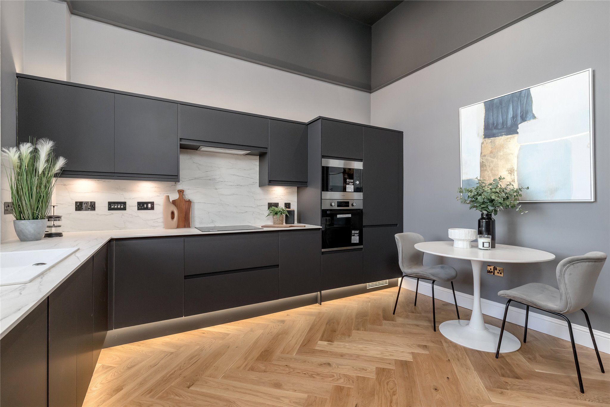 The elegant, light-filled sitting room features two full-height sash windows, one opening directly onto the balcony which offers lovely open views over the gardens. The sleek, contemporary kitchen is fitted with Quartz worktops and high-quality integrated appliances. The bedroom is generous in size, while the fully tiled shower room showcases stylish modern fittings and a luxurious finish.