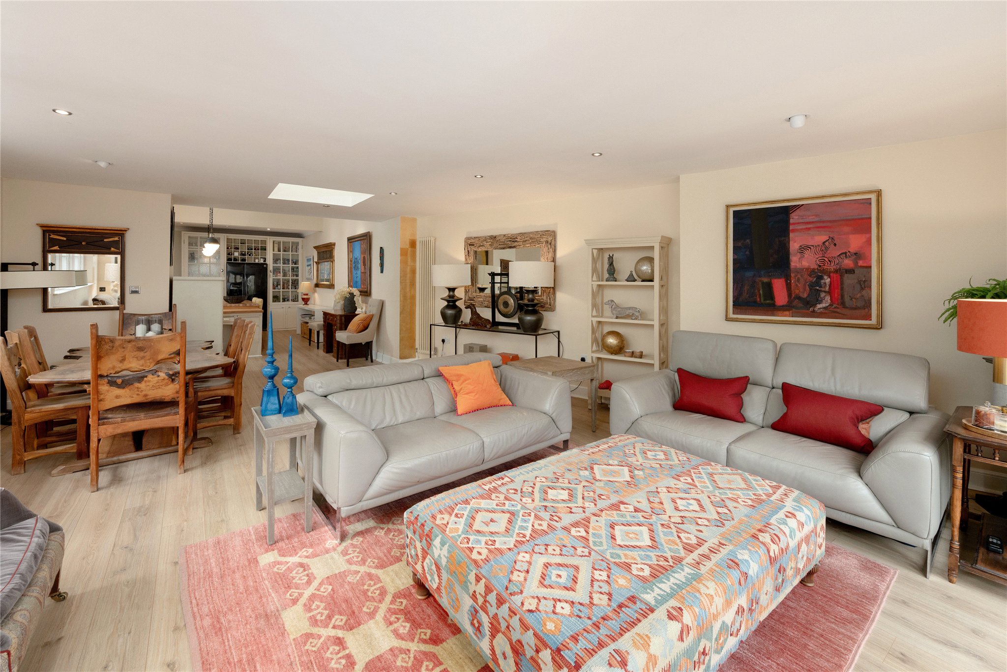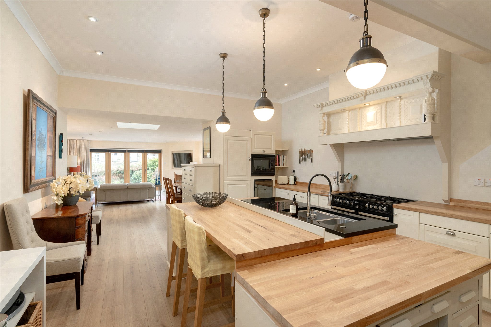 The magnificent open plan kitchen / dining / family room forms the heart of the home and provides a superbly designed space for both daily living and entertaining. Thoughtfully arranged to create distinct cooking, dining and relaxation areas, the room offers a wonderfully sociable environment and enjoys excellent natural light, making it an ideal setting for modern family life.