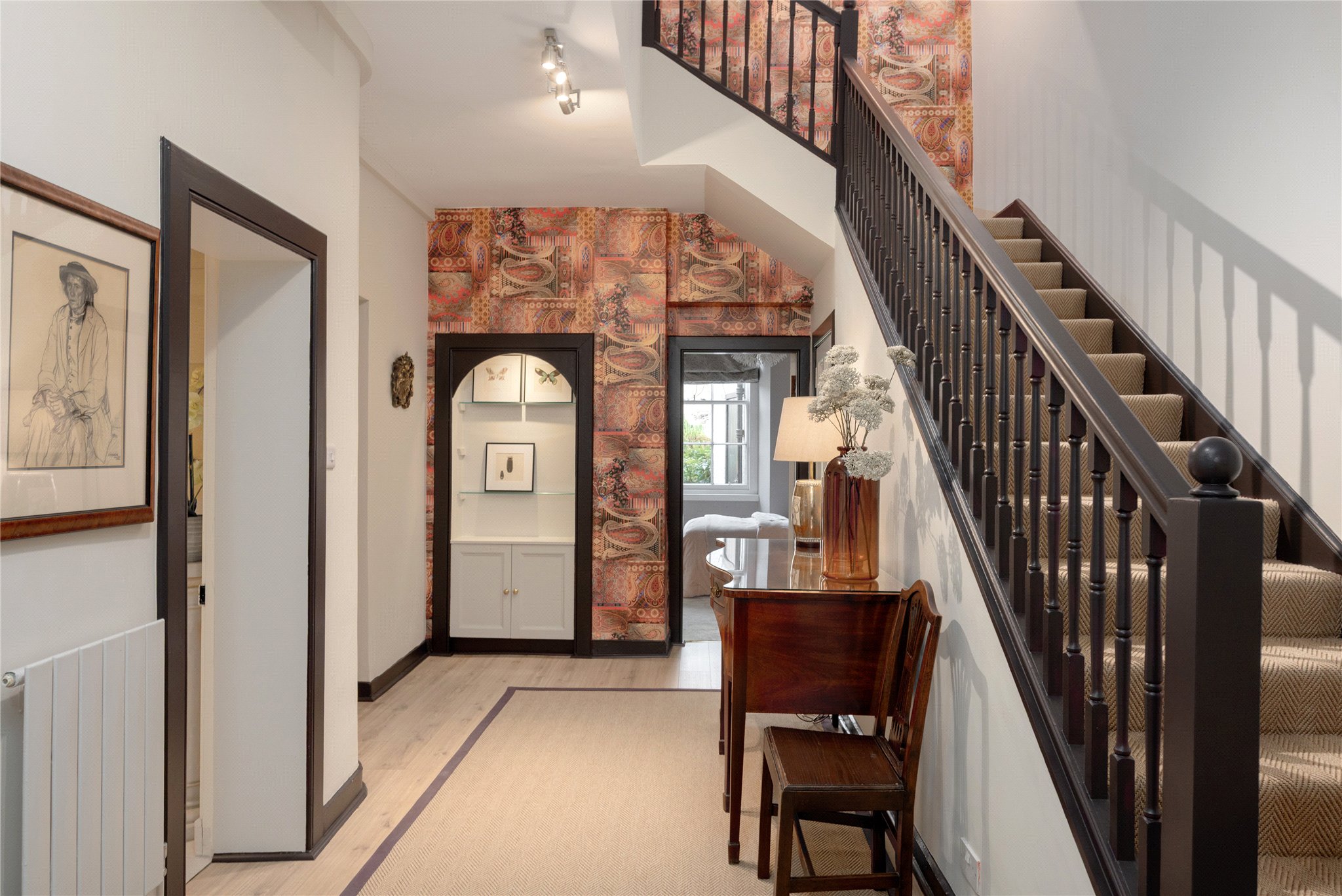 Entered via its own private main door, the property opens into a welcoming vestibule and reception hall which immediately sets the tone for the accommodation beyond, reflecting the scale and character expected of a distinguished period residence.