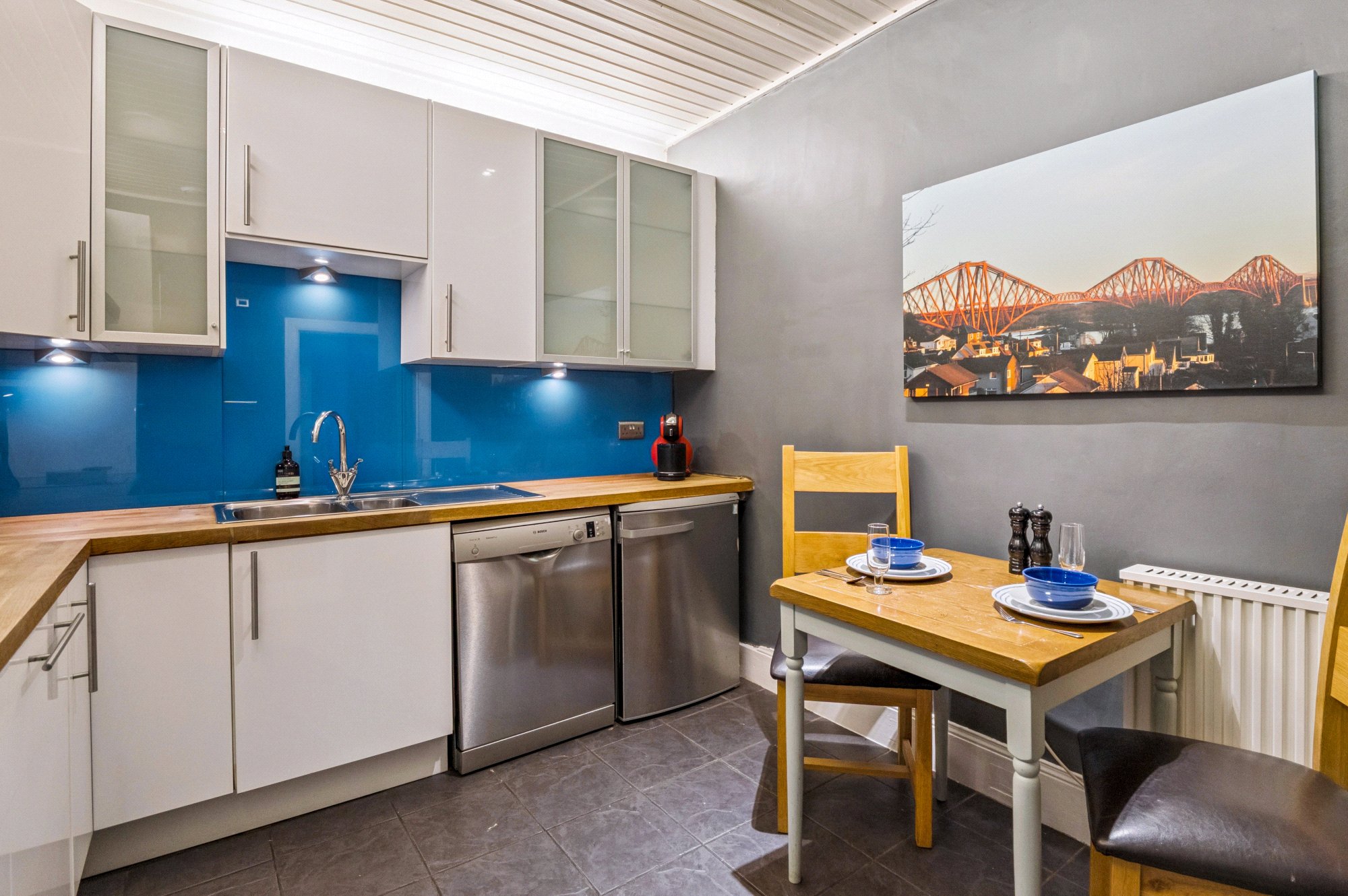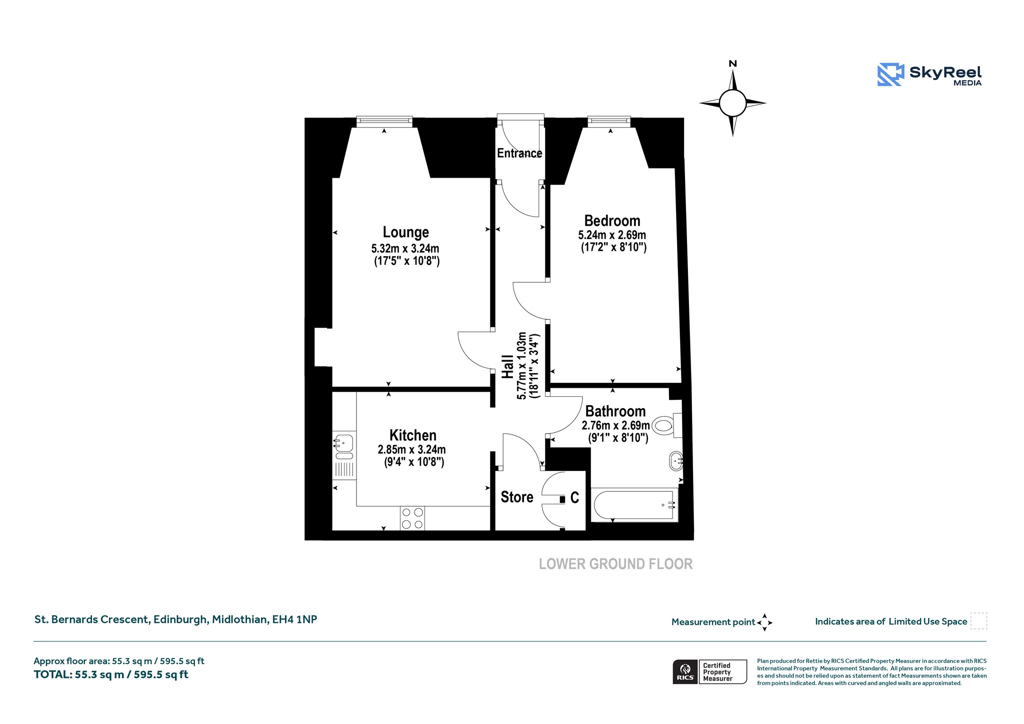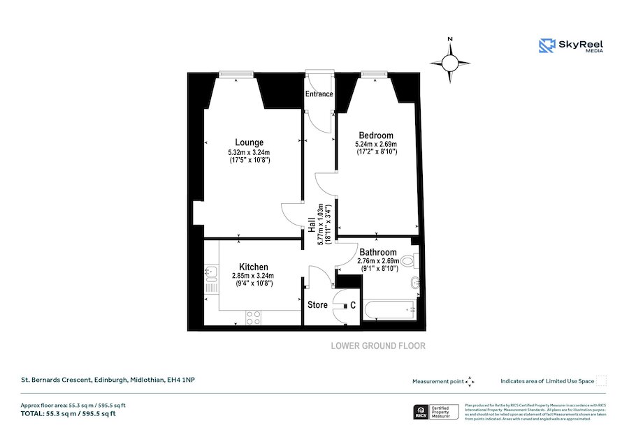 Nestled within one of Edinburgh’s most prestigious and picturesque New Town crescents, this stunning one-bedroom lower ground floor flat offers a superb blend of classic period character and contemporary comfort. Beautifully presented and well-proportioned throughout, the property extends to approximately 595.5 sq. ft and has been designed to make excellent use of space and natural light. The welcoming entrance hall leads to a generous lounge featuring a large bay window that floods the room with light, creating an inviting space ideal for both relaxing and entertaining. The stylish and well-equipped kitchen provides ample storage and workspace, with integrated appliances and room for informal dining. The spacious double bedroom enjoys a peaceful rear aspect, while the modern bathroom is fitted with a sleek three-piece suite, including a shower over the bath. Additional features include a useful store cupboard, gas central heating, and residents’ permit parking. Residents have access to the beautifully maintained St. Bernard’s Crescent Gardens, a tranquil private green space at the heart of the crescent, subject to a modest annual fee.
