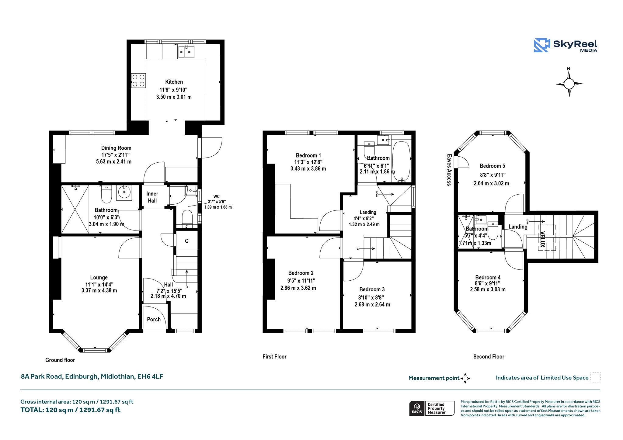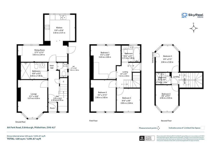 Three bedrooms, Family Bathroom.