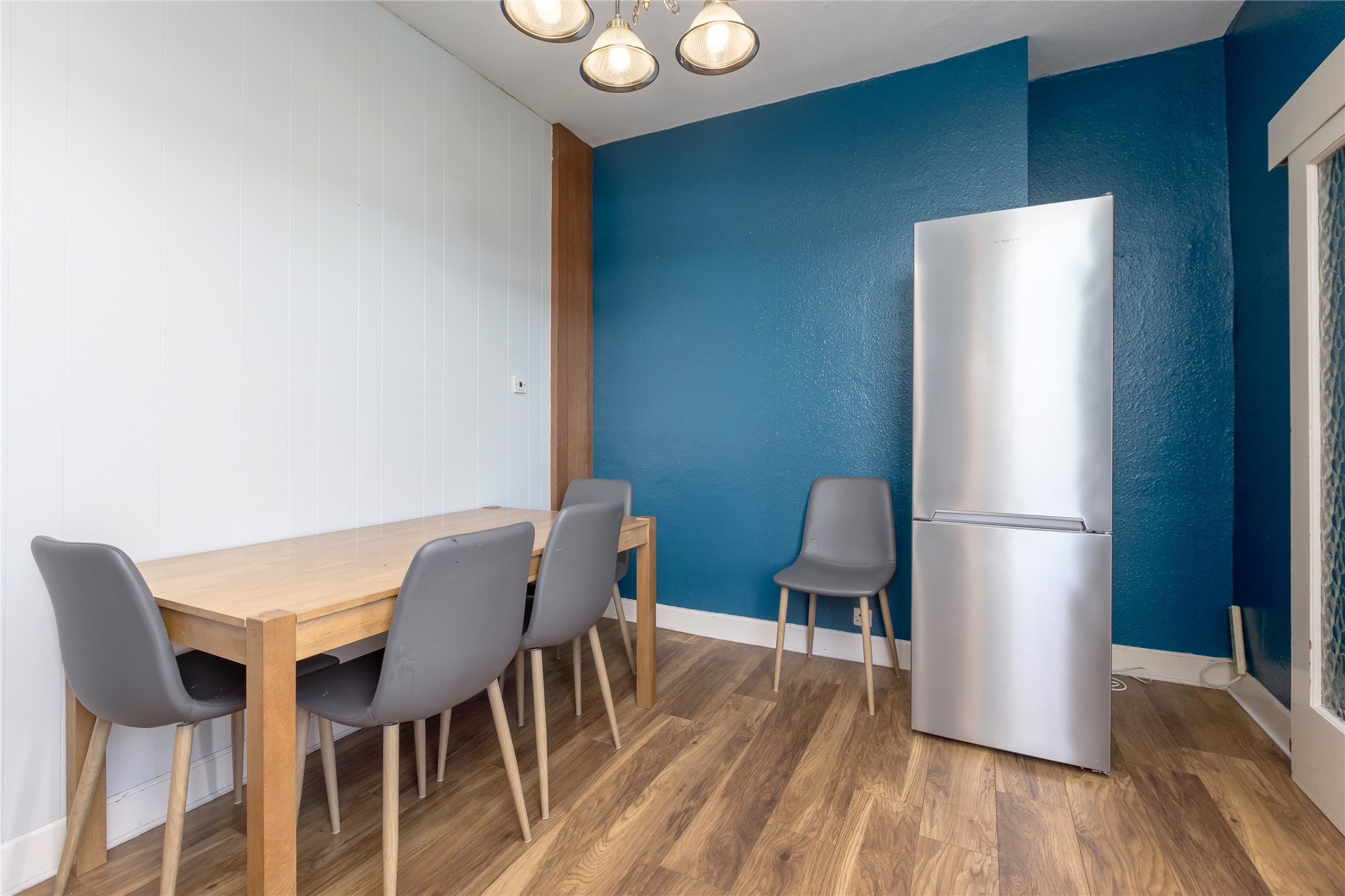 The property is presented in good condition throughout and provides bright, well-proportioned accommodation over two levels. On the first floor, the welcoming hallway leads to an impressive sitting room with generous proportions and excellent natural light. There is a separate dining room positioned conveniently beside the kitchen, creating an ideal space for both everyday living and entertaining. The kitchen is well laid out with ample storage and worktop space.